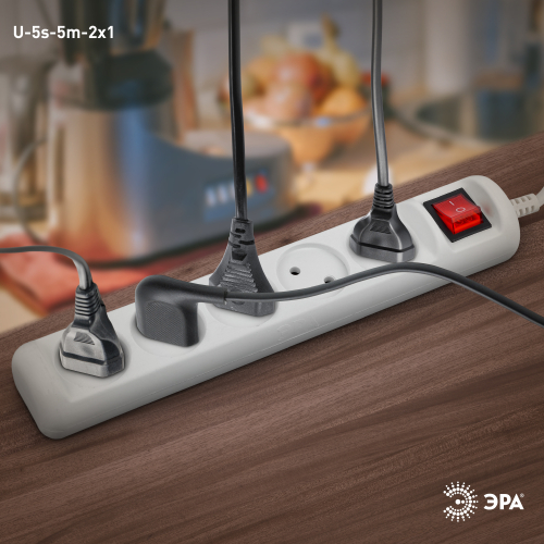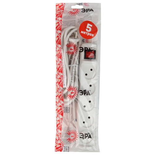 Удлинитель электрический Эра U-5s-5m-2x1 без заземления, c выключателем, 5 розеток, 5м ПВС 2x1мм2. Рассчитан на максимальную мощность 10А/2200. Удлинитель Эра станет Вашим надежным помощником, если Ваши любимые электроприборы находятся далеко от розеток. Провод в удлинителях Эра сделан из 100% меди, что делает его абсолютно пожаробезопасным. Корпус выполнен из ударопрочного и негорючего пластика (полипропилен). Модель удлинителя на 10А позволяет подключить бытовые приборы общей нагрузкой до 2200Вт. Дизайн удлинителя разработан в России командой Эра Style.