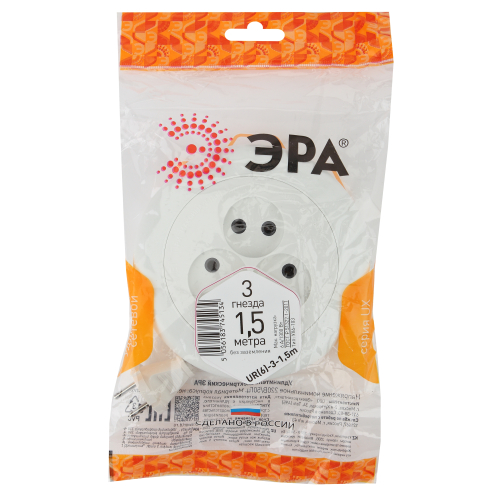 Бытовой удлинитель-рулетка с 3 гнёздами и шнуром 1,5 метра. Провод удобно прячется в корпус, что позволяет регулировать его длину при использовании прибора, а также компактно хранить удлинитель. Изготавливается в России из материалов, не поддерживающих горение. Надёжный двухжильный провод. Аккуратный круглый корпус. Позволяет одновременно подключать в сеть до 3 электроприборов с максимальной нагрузкой 6A/1300 Вт.