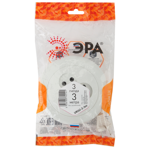 Удлинитель ЭРА серии UX без заземления: провод ШВВП 2x0.75мм2, корпус - ABS-пластик, негорючие вставки из армлена, максимальная нагрузка - 6A/1300Вт