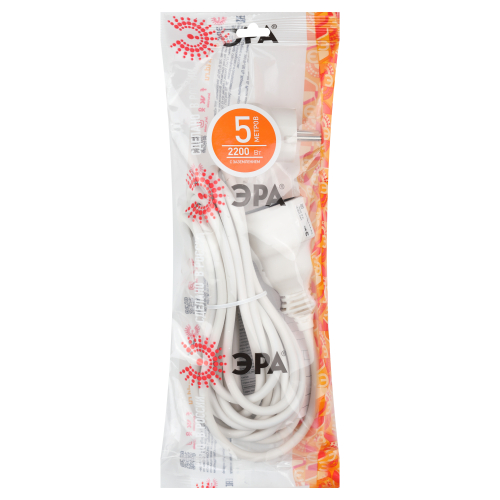 Удлинитель электрический Эра UX-1е-5m с заземлением, ПВС, 3x0,75мм2, 1 розетка, 5 м. Рассчитан на максимальную мощность 10А/2200. Удлинитель Эра станет Вашим надежным помощником, если Ваши любимые электроприборы находятся далеко от розеток. Провод в удлинителях Эра сделан из 100% меди, что делает его абсолютно пожаробезопасным. Корпус выполнен из ударопрочного и негорючего пластика (полипропилен). Вилка обеспечена кольцом для удобного извлечения ее из розетки. Модель удлинителя на 10А позволяет подключить бытовые приборы общей нагрузкой до 2200Вт. Дизайн удлинителя разработан в России командой Эра Style.