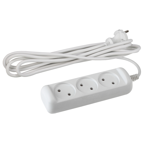 Удобный бытовой удлинитель ЭРА UX(6)-3-3m на 3 розетки, без заземления. Рассчитан на одновременное подключение к розетке до трёх маломощных электроприборов. Максимальная нагрузка - 6 A/ 1300 Вт. Шнур оптимальной длины - 3 метра. Надёжный двухжильный провод ПВС. Корпус изготовлен из прочного негорючего полипропилена, в составе - защищающие от возгорания антипирены. Закруглённые углы, брендирование на вилке и корпусе, базовый белый цвет- этот удлинитель отличается аккуратным приятным дизайном.