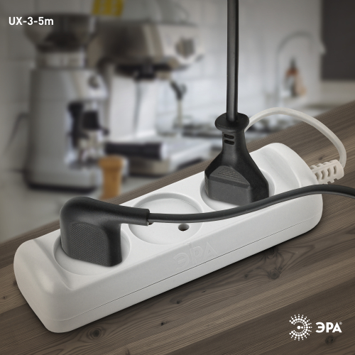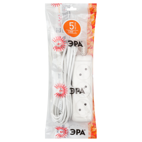 Бытовой удлинитель ЭРА UX-3-5m на 3 гнезда, отличается длинным проводом 5 метров ШВВП 2x0,75мм2. Рассчитан для подключения простых бытовых приборов стандартной мощности. Максимальная нагрузка - 6 A/ 1300 Вт. Базовый белый цвет, аккуратный дизайн с закруглёнными углами. Для комфорта и безопасности гнёзда слегка "утоплены" в корпус. Изготовлен из надёжного полипропилена со специальными антипиренами, препятствующими горению.
