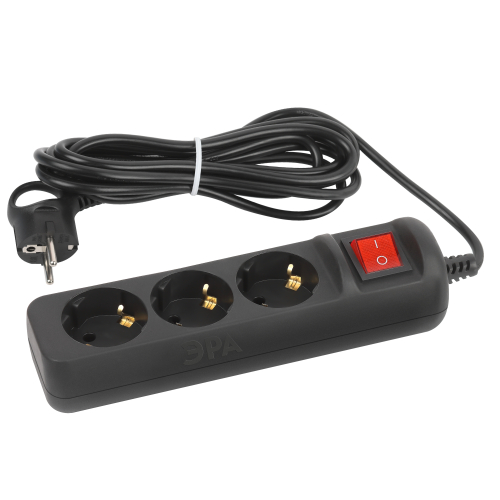 Удлинитель электрический Эра UX-3es-5m-B с заземлением, с выключателем, черный, 5 розетки. Провод ПВС, 3x0,75мм2, 5м. Рассчитан на максимальную мощность 10А/2200 Вт. Удлинитель Эра станет Вашим надежным помощником, если Ваши любимые электроприборы находятся далеко от розеток. Провод в удлинителях Эра сделан из 100% меди, что делает его абсолютно пожаробезопасным. Корпус выполнен из ударопрочного и негорючего пластика (полипропилен). Вилка обеспечена кольцом для удобного извлечения ее из розетки. Модель удлинителя на 10А позволяет подключить бытовые приборы общей нагрузкой до 2200Вт. Дизайн удлинителя разработан в России командой Эра Style.