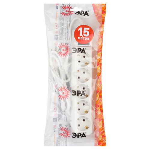 Удлинитель электрический Эра UX-5es-1,5m с заземлением, с выключателем, ПВС, 3x0,75мм2, 5 розетки, 1,5 м. Рассчитан на максимальную мощность 10А/2200 Вт. Удлинитель Эра станет Вашим надежным помощником, если Ваши любимые электроприборы находятся далеко от розеток. Провод в удлинителях Эра сделан из 100% меди, что делает его абсолютно пожаробезопасным. Корпус выполнен из ударопрочного и негорючего пластика (полипропилен). Вилка обеспечена кольцом для удобного извлечения ее из розетки. Модель удлинителя на 10А позволяет подключить бытовые приборы общей нагрузкой до 2200Вт. Дизайн удлинителя разработан в России командой Эра Style.