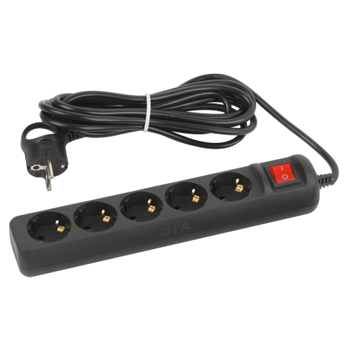 Удлинитель электрический Эра UX-5es-5m-B с заземлением, с выключателем, черный, 5 розеток. Провод ПВС, 3x0,75мм2, 5м. Рассчитан на максимальную мощность 10А/2200 Вт. Удлинитель Эра станет Вашим надежным помощником, если Ваши любимые электроприборы находятся далеко от розеток. Провод в удлинителях Эра сделан из 100% меди, что делает его абсолютно пожаробезопасным. Корпус выполнен из ударопрочного и негорючего пластика (полипропилен). Вилка обеспечена кольцом для удобного извлечения ее из розетки. Модель удлинителя на 10А позволяет подключить бытовые приборы общей нагрузкой до 2200Вт. Дизайн удлинителя разработан в России командой Эра Style.