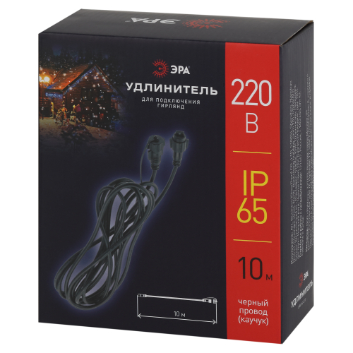 Профессиональный удлинитель для уличных гирлянд ЭРА ERAPS-U10 с высокой защитой от влаги и пыли - IP65. Длина уличного профессионального удлинителя - 10 метров. Профессиональный удлинитель с вилкой. Позволяет с легкостью создавать масштабные новогодние инсталляции на значительном расстоянии от электросети. Удлинитель профессиональный для уличных гирлянд от торговой марки ЭРА устойчив к морозам, перепадам температур, осадкам, наледи, порывам ветра. Профессиональное новогоднее освещение ЭРА производится на заводах мирового уровня и является светотехникой высочайшего класса. Это позволяет применять такую иллюминацию очень широко, в том числе для освещения муниципальных объектов, крупных торговых и бизнес-центров. Незаменимое решение проектных задач по новогодней иллюминации.