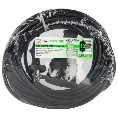 Удлинитель силовой ЭРА GREEN LINE в бухте BUH-6-10m без заземления, 1 розетка, провод 10м ПВС 2х0,75мм2. Степень защиты IP20. Мощность 6А/1300Вт. Используется для работы на строительных площадках или дачных участках. Удобен при работе с приборами находящимися удаленно от стационарной розетки. Например, газонокосилки, электрические пилы, триммеры или электродрели.
