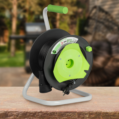 Удлинитель силовой ЭРА GREEN LINE на пластиковой катушке GAZ-2x0.75-30m, 1 розетка без крышки-IP20 без заземления. Провод 30м ПВС 2х0,75мм2. Мощность 6А/1300Вт. Используется для работы на строительных площадках или дачных участках. Удобен при работе с приборами, находящимися удаленно от стационарной розетки. Например, газонокосилки, электрические, пилы, триммеры или электродрели. Рама удлинителя сделана из высокопрочной стали, а пластиковой корпус катушки выполнен с применением негорючих добавок.