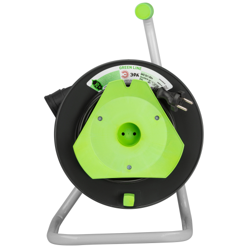 Удлинитель силовой ЭРА GREEN LINE на пластиковой катушке GAZ-2x1-20m, 1 розетка без крышки - IP20 без заземления. Провод 20м ПВС 2х1мм2. Мощность 10А/2200Вт. Используется для работы на строительных площадках или дачных участках. Удобен при работе с приборами, находящимися удаленно от стационарной розетки. Например, газонокосилки, электрические, пилы, триммеры или электродрели. Рама удлинителя сделана из высокопрочной стали, а пластиковой корпус катушки выполнен с применением негорючих добавок.