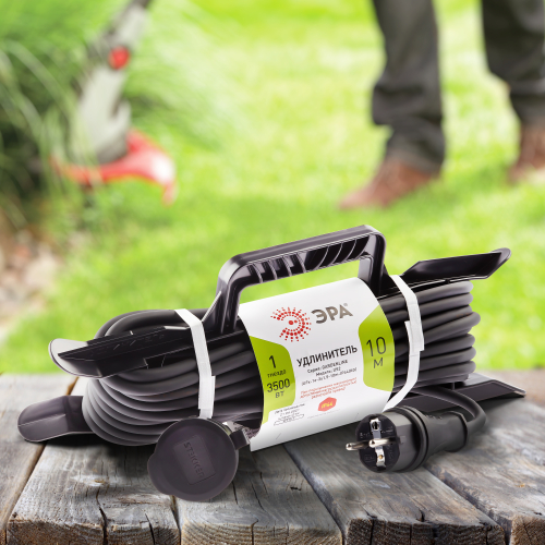 Удлинитель силовой на рамке UFx-1e-3x1,5-10m-IP44(KG) с заземлением, КГ 3x1,5мм2, 1 розетка, 10м, степень защиты IP44. Мощность 16А/3500Вт. Используется для работы на строительных площадках или дачных участках. Удобен при работе с приборами, находящимися удаленно от стационарной розетки. Например, газонокосилки, электрические, пилы, триммеры или электродрели. Провод в удлинителях Эра сделан из 100% меди, что делает его абсолютно пожаробезопасным. Рама-полипропилен.