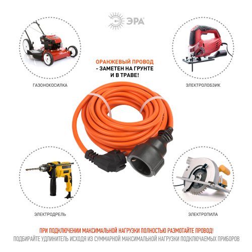 Удлинитель силовой в бухте ЭРА UPx-1e-3x1.5-10m с заземлением, ПВС 3х1,5м2, 1 розетка, 10м, степень защиты IP20. Мощность 16А/3500Вт. Используется для работы на строительных площадках или дачных участках. Удобен при работе с приборами находящимися удаленно от стационарной розетки. Например, газонокосилки, электрические, пилы, триммеры или электродрели. Провод в удлинителях Эра сделан из 100% меди, что делает его абсолютно пожаробезопасным.