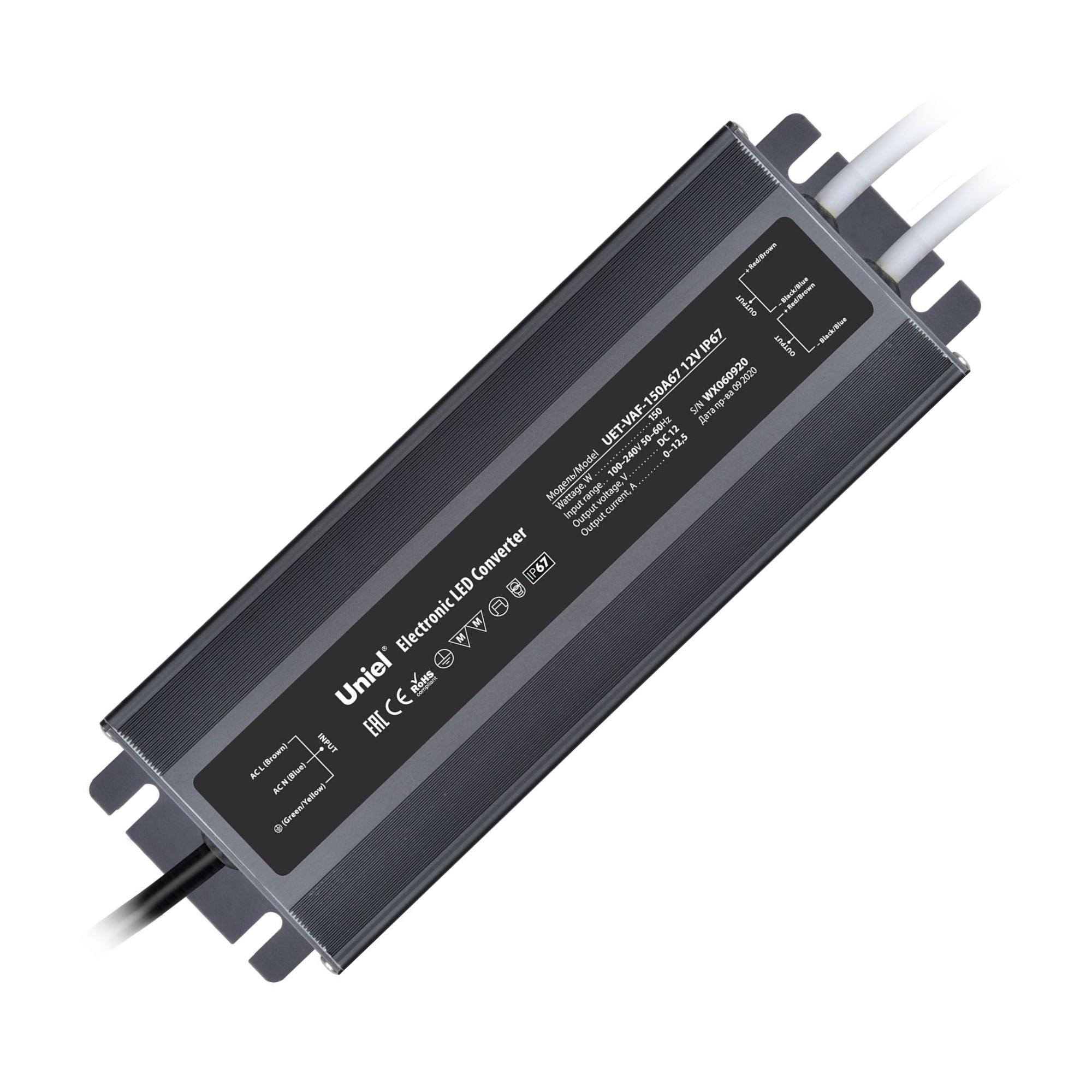 Блок питания ультратонкий UET-VAF-150A67 12V IP67 предназначен для светодиодных источников света постоянного напряжения, а именно светодиодных лент и модулей. Количество выходов - 2. Ультратонкий герметичный корпус выполнен из алюминия, цвет - серебристый. Входное напряжение - 100-240 В. Высокая степень защиты: от короткого замыкания, скачков напряжения, от перегрева и перегрузки. Мощность - 150 Вт, степень пылевлагозащиты - IP67. Диапазон рабочих температур - от -25 до +50 С˚. Габариты блока питания - ДхШхВ 187х67х21 мм. Общий вес комплекта - 268 г. Гарантия от производителя - 2 года. Срок службы - 30 000 часов.