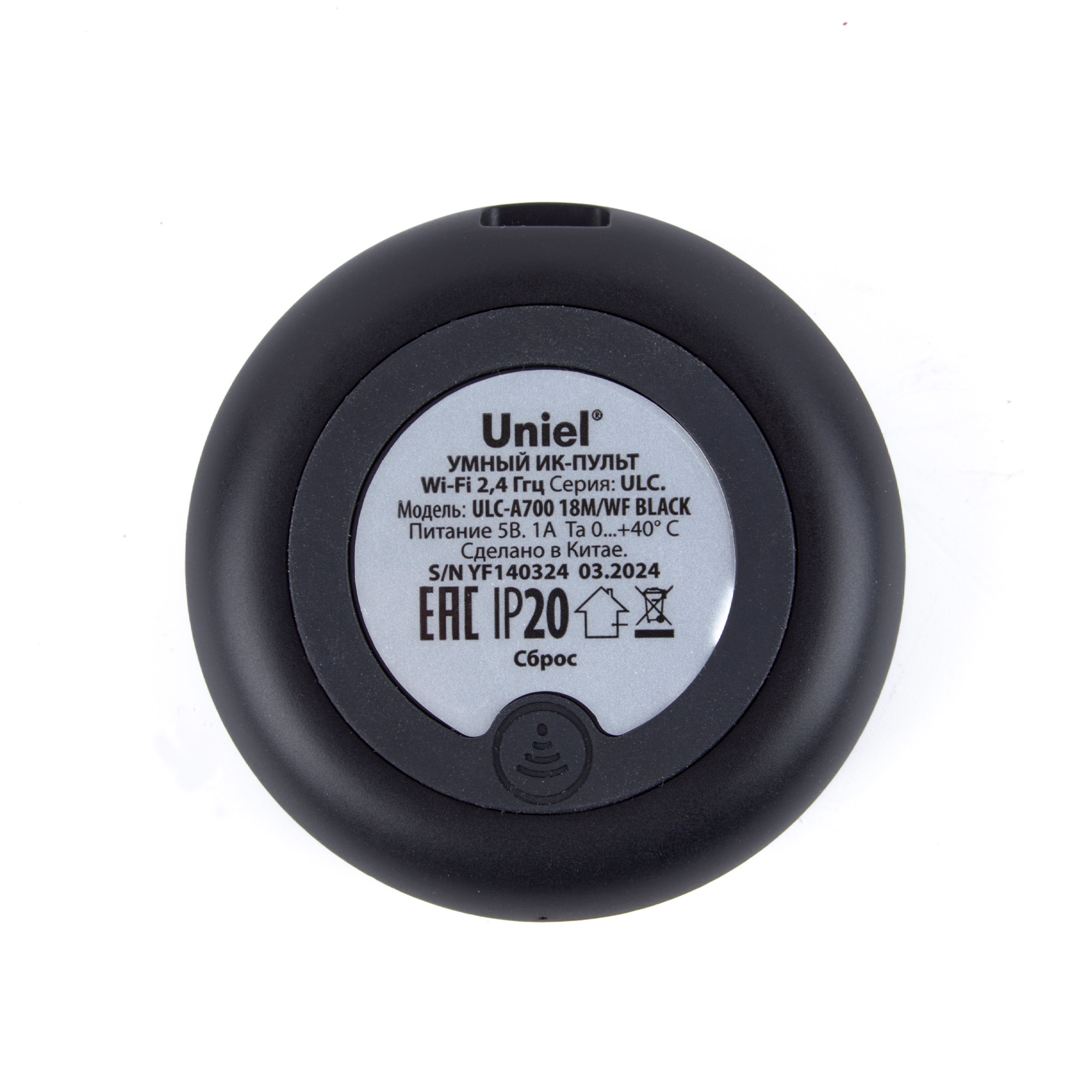 Обучаемый ИК-пульт ULC-A700 18M/WF BLACK со встроенным модулем Wi-Fi предназначен для управления различными домашними устройствами по инфракрасному каналу и может служить универсальной заменой множеству домашних ИК-пультов для телевизоров, ТВ-приставок, кондиционеров и другой бытовой техники. Управление осуществляется посредством мобильного приложения UNIEL Smart.