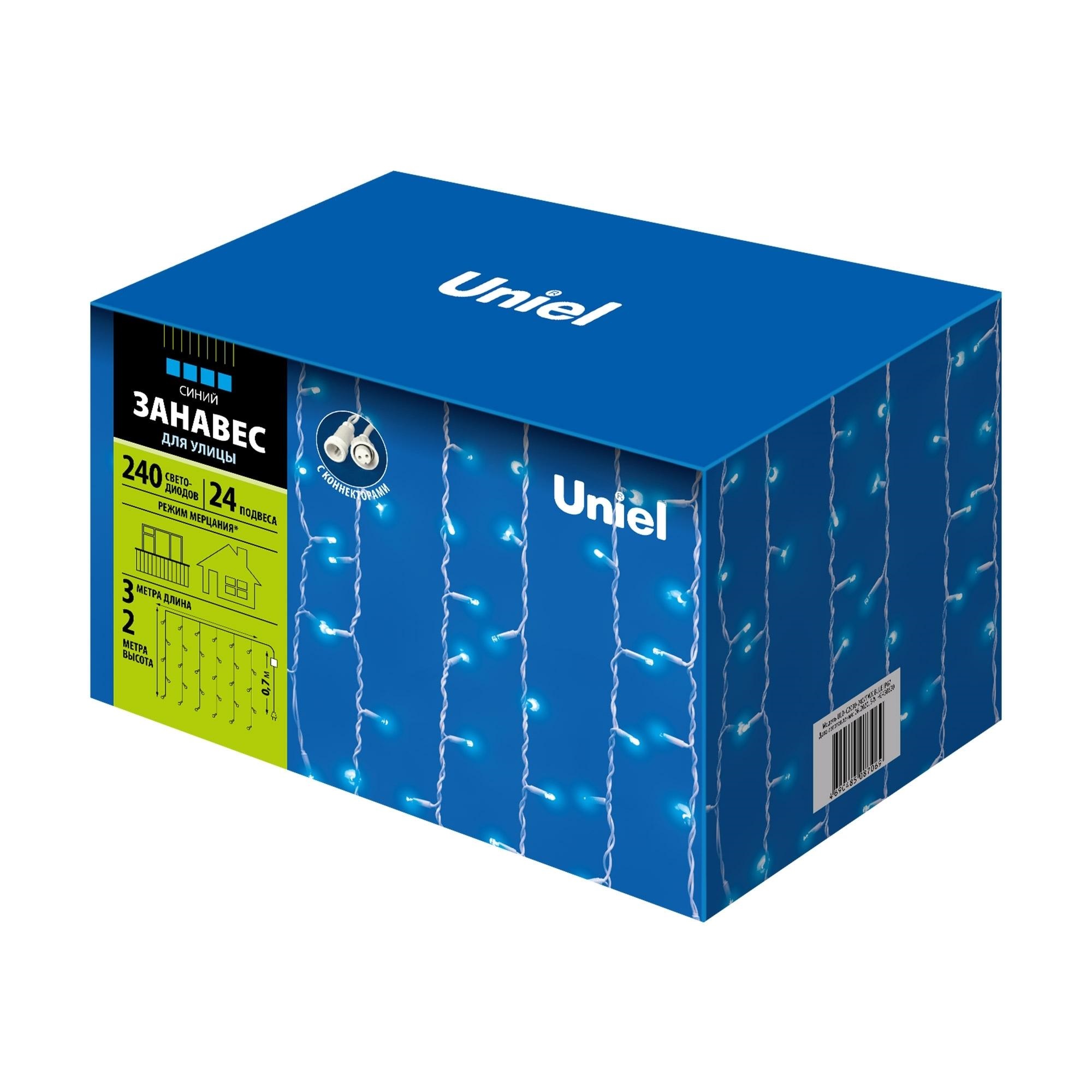 Занавес светодиодный с эффектом мерцания ULD-C2030-240/TWK BLUE IP67 предназначен для декоративной подсветки, праздничного оформления в помещении и наружного дизайна. Свет - синий. Количество подвесов - 24 шт. Тип свечения - динамический (эффект мерцания). Гирлянда изготовлена из пластика, цвет провода - белый. Занавес снабжен коннектором для последовательного соединения. Рекомендуется соединять между собой не более 6 шт. Материал изоляции кабеля - каучук. Температурный режим работы от -30 до +35 С˚, степень пылевлагозащиты IP 67. Длина занавеса составляет 1,5 м, общее количество светодиодов - 240 шт. Мощность - 10,8 Вт. В комплектацию входит сетевой кабель длиной 1,5 м. Светодиодный занавес - это простой и оригинальный способ создать праздничную атмосферу дома, на даче, в офисе. Благодаря использованию светодиодов отличительной особенностью гирлянды является превосходная яркость и низкое энергопотребление. Требуется подключение к сети. Поставляется в картонной упаковке. Габариты занавеса - ДхШхВ 3000х40х2000 мм. Вес изделия - 2360 г. Гарантия от производителя - 1 год. Срок службы - 50000 часов.