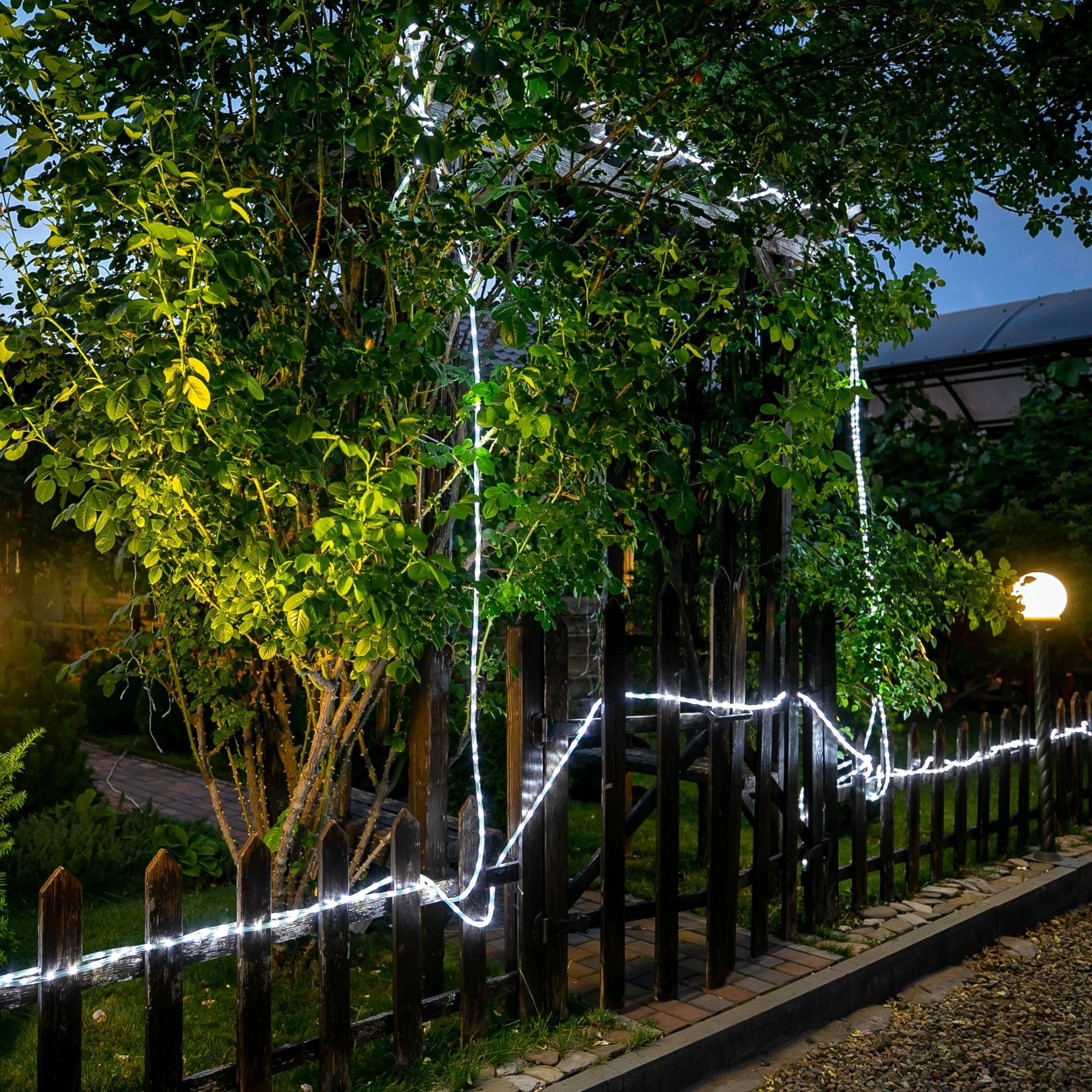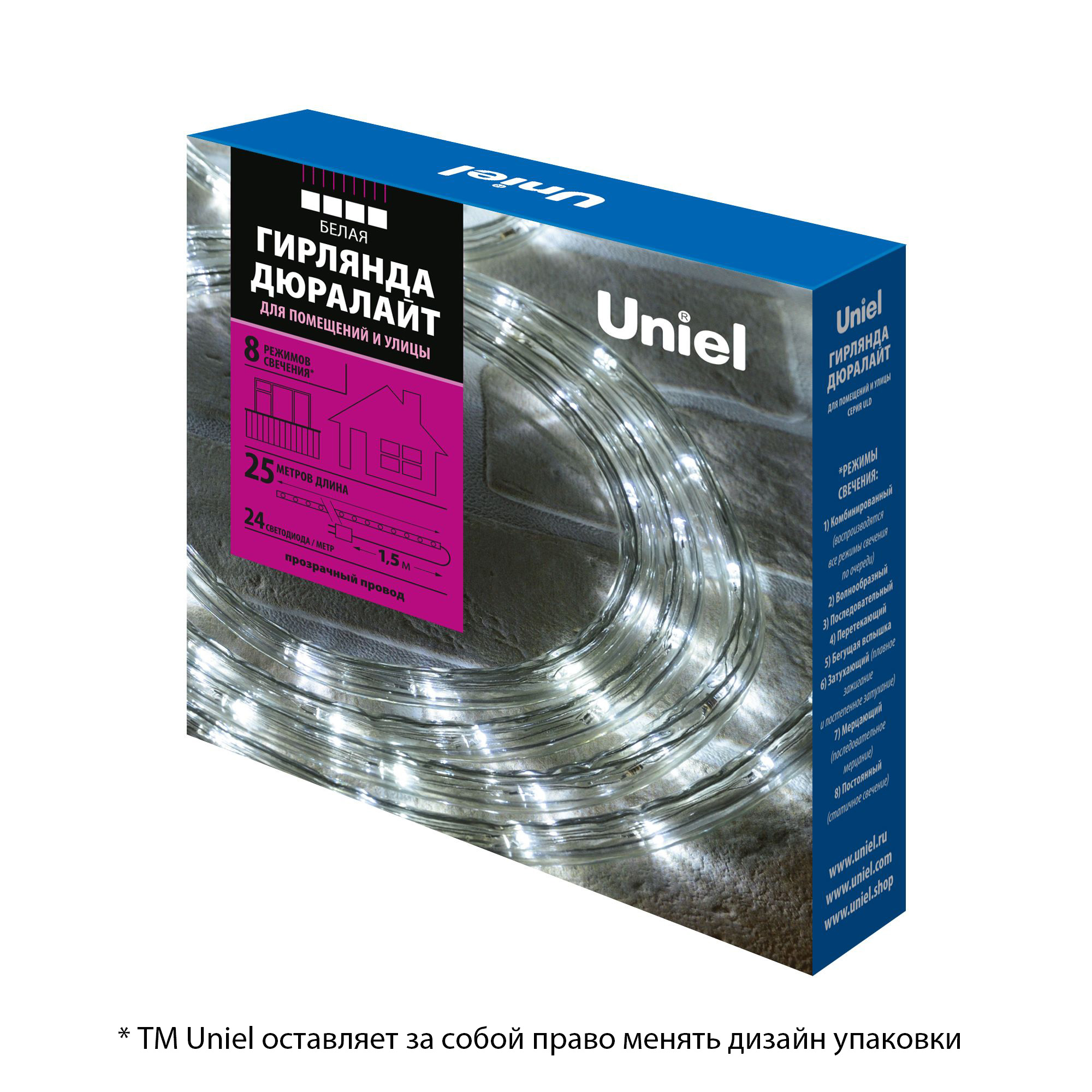 Светодиодная гирлянда Дюралайт ULD-D50 25M/С08 IP44 WHITE предназначена для декоративной подсветки и праздничного оформления в помещении, а также наружного дизайна. Свет - белый. Гирлянда изготовлена из пластика, цвет провода и внешней трубки - прозрачный. Гирлянда имеет 8 режимов свечения - волнообразный, последовательный, перетекающий, бегущая вспышка, затухающий, мерцающий, постоянный и комбинированный (воспроизводит все режимы по очереди). Переключение режимов свечения осуществляется путем нажатия кнопки на обратной стороне вилки. Температурный режим работы от -20 до +40 ˚С, степень пылевлагозащиты IP 44. Длина гирлянды составляет 25 м, количество светодиодов на метр - 24 шт. Благодаря использованию светодиодов общей мощностью 35 Вт, её отличительной особенностью является превосходная яркость и низкое энергопотребление. В комплекте сетевой кабель длиной 1,5 метра. Светодиодная гирлянда как элемент декора украсит в любое время года коттеджи, магазины, офисы, спортивные центры, а также привлечет внимание к витринам магазинов. Поставляется в картонной упаковке. Габариты гирлянды - ДхШхВ 25000х30х100 мм. Вес изделия - 2450 г. Гарантия от производителя - 1 год. Срок службы - 20000 часов.