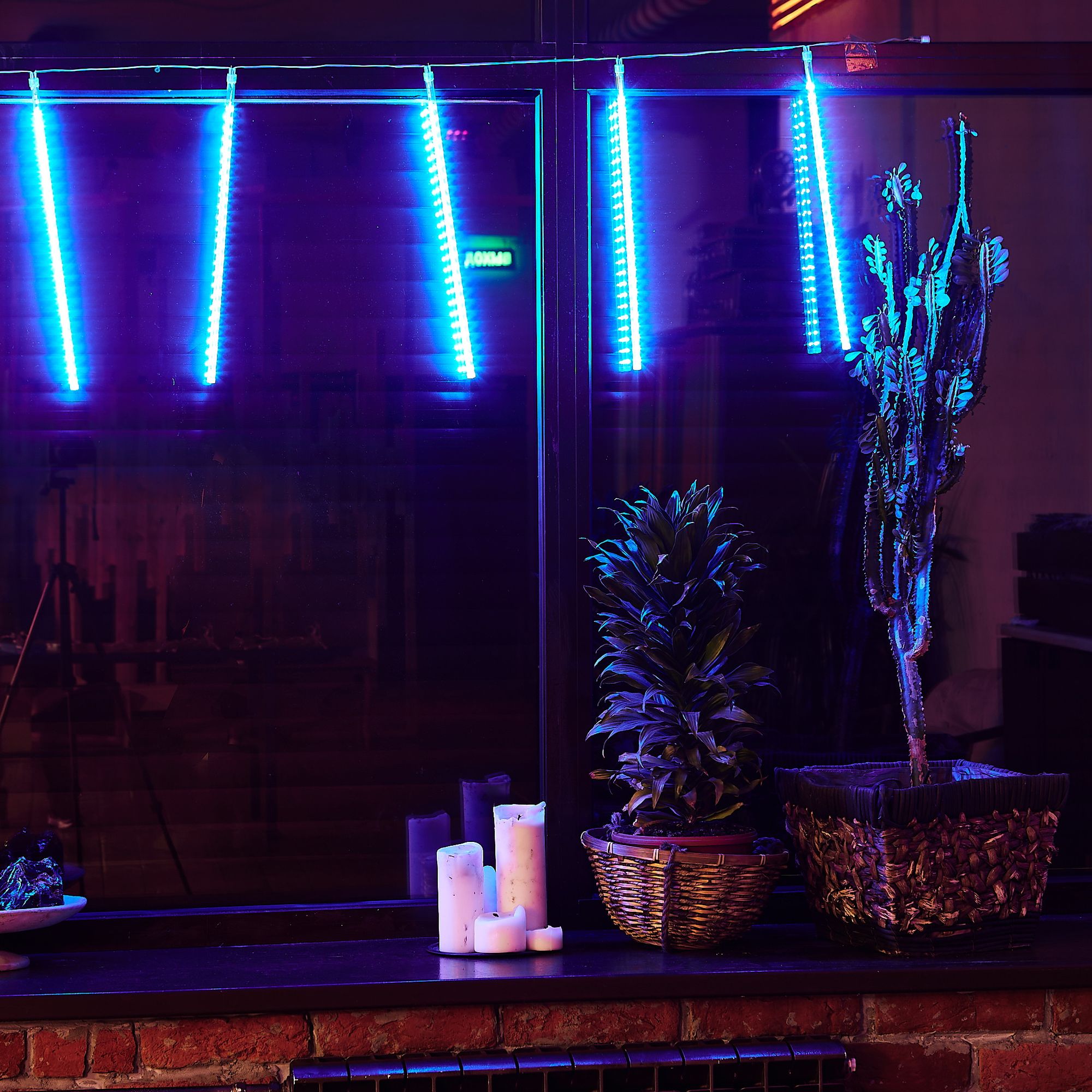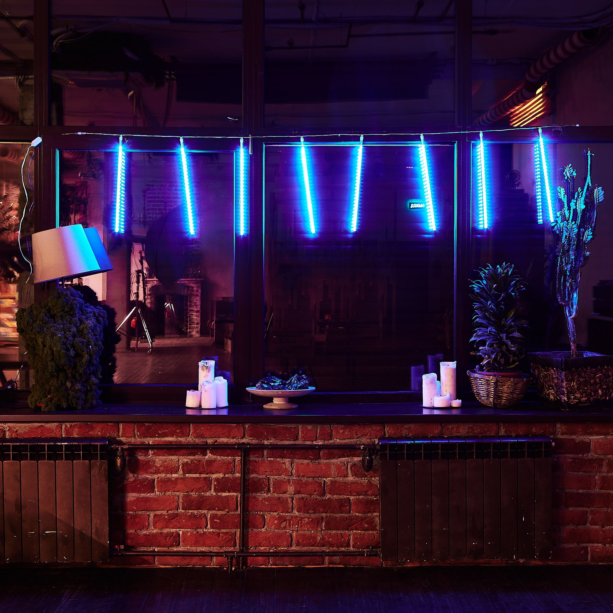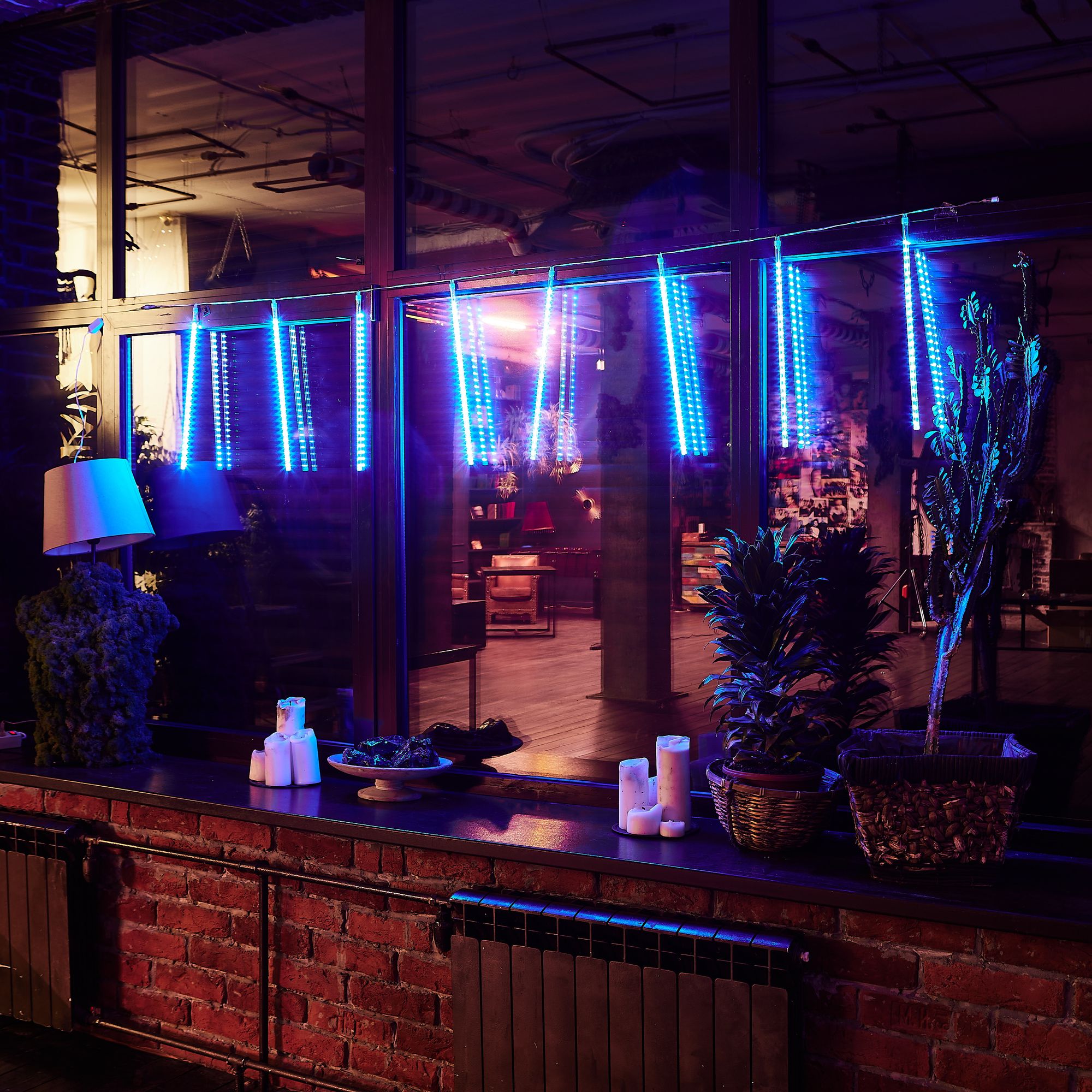Занавес светодиодный фигурный Падающие звезды ULD-E2405-240/DTK BLUE IP44 METEOR предназначен для декоративной подсветки, праздничного оформления в помещении и наружного дизайна. Свет - синий. Количество подвесов - 8 шт. Тип свечения - динамический (перетекающее свечение). Гирлянда изготовлена из пластика, цвет провода - прозрачный. Занавес снабжен коннектором для последовательного соединения. Рекомендуется соединять между собой не более 3 шт. Материал изоляции кабеля - ПВХ. Температурный режим работы от -30 до +35 С˚, степень пылевлагозащиты IP 44. Длина занавеса составляет 2 м, общее количество светодиодов - 385 шт. Мощность - 6 Вт. В комплектацию входит сетевой кабель длиной 1,5 м. Светодиодный занавес - это простой и оригинальный способ создать праздничную атмосферу дома, на даче, в офисе. Благодаря использованию светодиодов отличительной особенностью гирлянды является превосходная яркость и низкое энергопотребление. Требуется подключение к сети. Поставляется в картонной упаковке. Габариты занавеса - ДхШхВ 2000х35х500 мм. Вес изделия - 200 г. Гарантия от производителя - 1 год. Срок службы - 30000 часов.