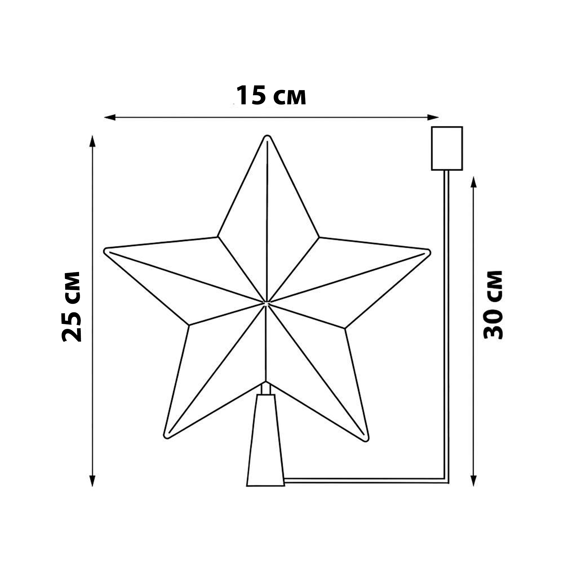 Украшение светодиодное Звезда-5 на батарейках ULD-H1525-009/STB/2AA WARM WHITE STAR-5 предназначено для декора верхушки елок любой высоты. Свет - теплый белый. Цветовая температура - 3000 К. Тип свечения - статический. Элемент питания - 2 батарейки типа АА (в комплект не входят). Украшение изготовлено из пластика. Количество светодиодов - 9 шт. Степень пылевлагозащиты IP20, диапазон рабочих температур от -20 до +35 °С. Срок службы - до 30 000 часов. Длина кабеля 0,3 м. Цвет провода - прозрачный. Светодиодная звезда для елки - простой и оригинальный способ создать праздничную атмосферу дома, на даче, в офисе, в кафе и торговом центре. Светодиодные украшения на батарейках не требуют подключения к сети, что позволит создать новогодний светодекор даже вдали от розеток. Поставляется в картонной упаковке. Габариты изделия - ДхШхВ 160х30х250 мм. Вес изделия - 75 г. Гарантия 1 год. Срок службы фигуры - 30 000 часов.