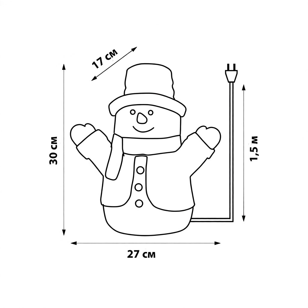 Фигура светодиодная Снеговик ULD-M2730-024/STA WHITE IP20 SNOWMAN предназначена для праздничного декора в помещении. Свет - белый. Фигура изготовлена из пластика. Количество светодиодов - 24 шт. Мощность - 2,5 Вт. Степень пылевлагозащиы IP20, диапазон рабочих температур от -20 до +35 °С. В комплектацию входит сетевой кабель длиной 1,5 м. Цвет провода - прозрачный. Светодиодные фигуры - простой и оригинальный способ создать праздничную атмосферу дома, на даче, в офисе, в кафе и торговом центре. Благодаря использованию светодиодов отличительной особенностью фигуры является превосходная яркость и низкое энергопотребление. Поставляется в картонной упаковке. Габариты изделия - ДхШхВ 270х170х300 мм. Вес изделия - 777 г. Гарантия 1 год. Срок службы фигуры - 50 000 часов.