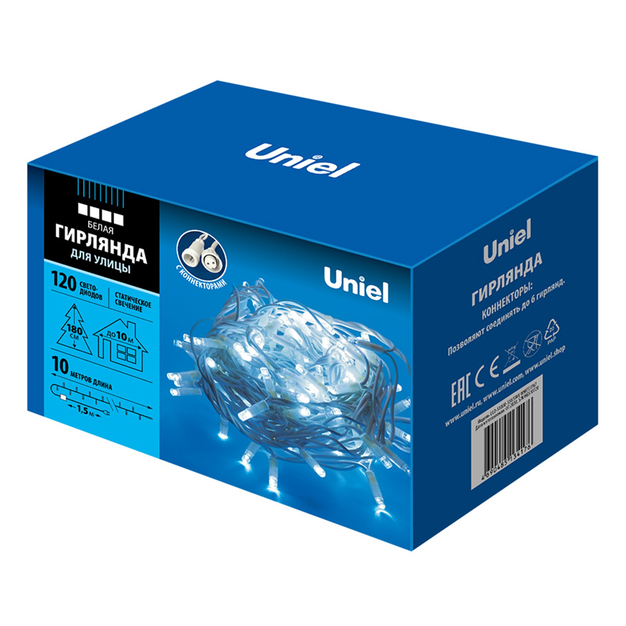 Гирлянда светодиодная соединяемая ULD-S1000-120/SWK WHITE IP67 предназначена для декоративной подсветки и праздничного оформления в помещении, а также наружного дизайна. Свет - белый. Режим свечения - статический. Гирлянда снабжена коннектором для последовательного соединения. Рекомендуется соединять между собой не более 6 гирлянд. Гирлянда изготовлена из пластика, цвет провода - белый. Материал изоляции кабеля - каучук. Температурный режим работы от -30 до +35 С˚, степень пылевлагозащиты IP 67. Длина гирлянды составляет 10 м, общее количество светодиодов - 120 шт. Мощность 5 Вт. Цветовая температура 4000К. В комплекте сетевой кабель длиной 1,5 м. Декоративная светодиодная гирлянда - яркий элемент праздничного декора дома, на даче и на улице, а также украшение для елки 180 см. Требуется подключение к сети. Поставляется в картонной упаковке. Габариты гирлянды - ДхШхВ 10000х40х35 мм. Вес изделия - 918 г. Гарантия от производителя - 1 год. Срок службы - 50000 часов.