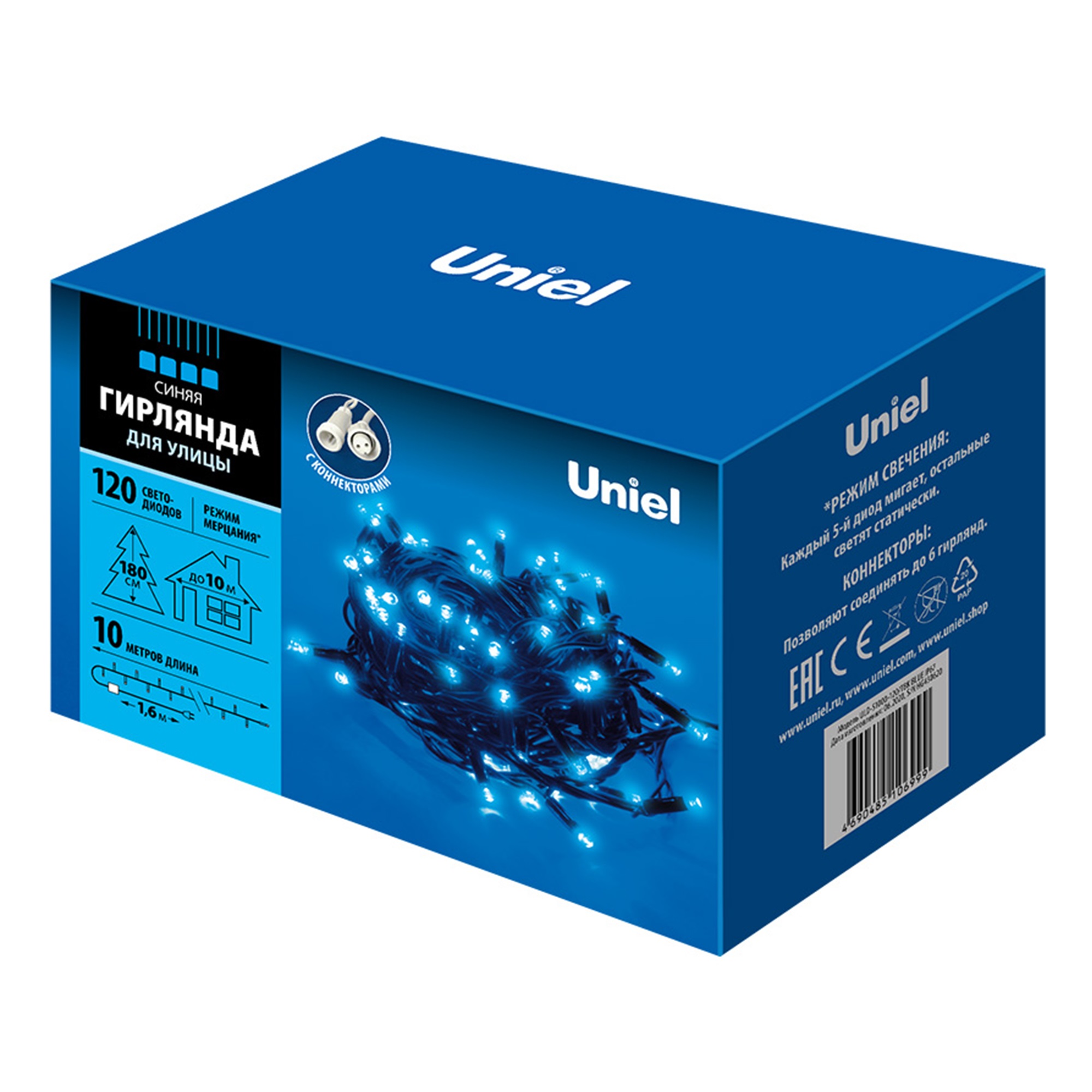 Гирлянда светодиодная соединяемая ULD-S1000-120/TBK BLUE IP67 с эффектом мерцания предназначена для декоративной подсветки и праздничного оформления в помещении, а также наружного дизайна. Свет - синий. Тип свечения - динамический (режим мерцания). Гирлянда снабжена коннектором для последовательного соединения. Рекомендуется соединять между собой не более 6 гирлянд. Гирлянда изготовлена из пластика, цвет провода - черный. Материал изоляции кабеля - каучук. Температурный режим работы от -30 до +35 С˚, степень пылевлагозащиты IP 67. Длина гирлянды составляет 10 м, общее количество светодиодов - 120 шт. Мощность 5 Вт. В комплекте сетевой кабель длиной 1,5 м. Декоративная светодиодная гирлянда - яркий элемент праздничного декора дома, на даче и на улице, а также украшение для елки 180 см. Требуется подключение к сети. Поставляется в картонной упаковке. Габариты гирлянды - ДхШхВ 10000х40х35 мм. Вес изделия - 926 г. Гарантия от производителя - 1 год. Срок службы - 50000 часов.