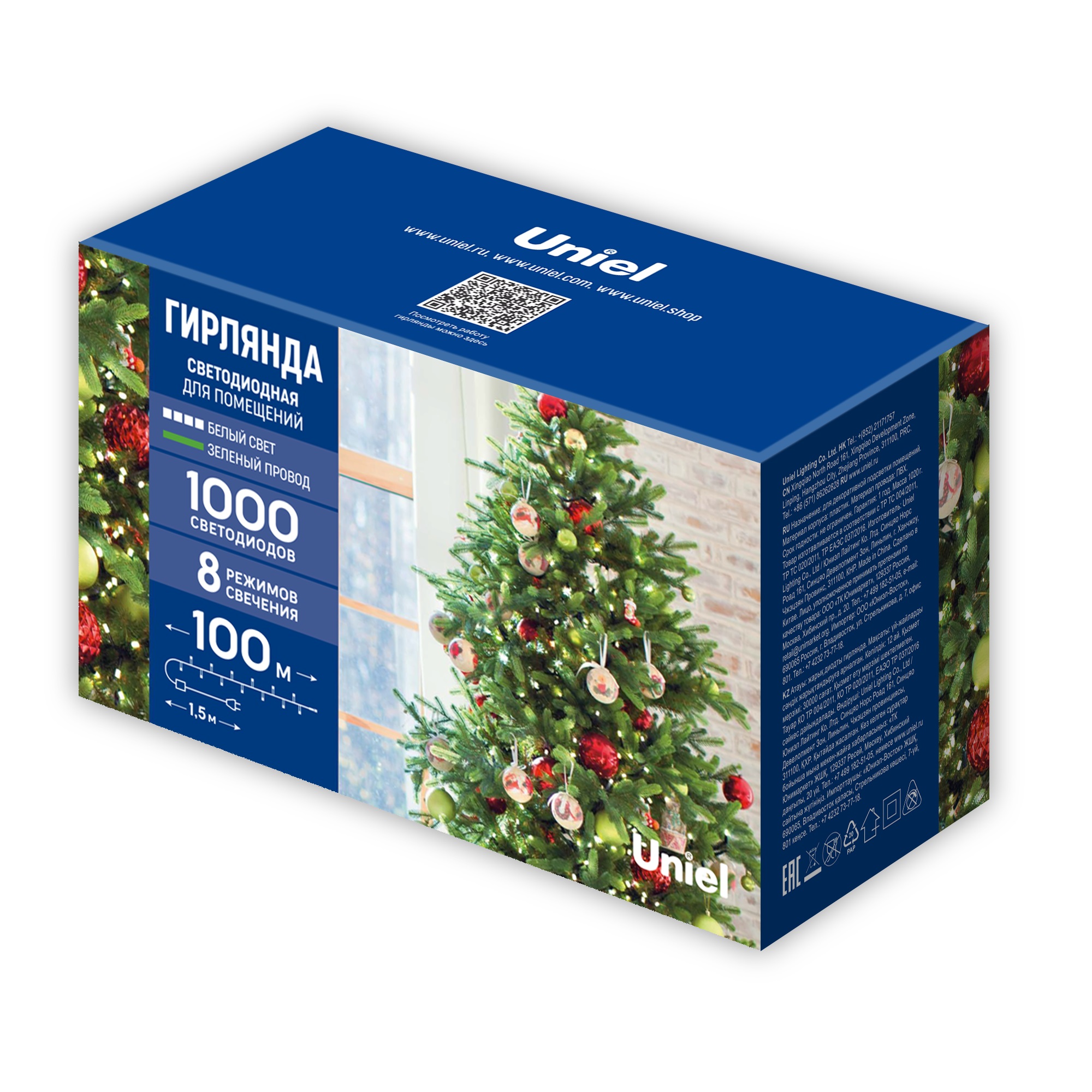 Светодиодная гирлянда ULD-S10000-1000/DGA WHITE IP20 предназначена для декоративной подсветки и праздничного оформления в помещении. Свет - белый. Цветовая температура 4000 К. Гирлянда изготовлена из пластика, цвет провода - зеленый. Гирлянда имеет 8 режимов свечения - волнообразный, последовательный, перетекающий, бегущая вспышка, затухающий, мерцающий, постоянный и комбнированный (воспроизводит все режимы по очереди). В комплект входит удобный контроллер для переключения режимов свечения.Температурный режим работы от -20 до +35 С˚, степень пылевлагозащиты IP 20. Длина гирлянды составляет 100 м, общее количество светодиодов - 1000 шт. Благодаря использованию светодиодов общей мощностью 50 Вт, её отличительной особенностью является превосходная яркость и низкое энергопотребление. В комплекте сетевой кабель длиной 1,5 метра. Светодиодная гирлянда как элемент декора украсит в любое время года коттеджи, магазины, офисы, спортивные центры, а также привлечет внимание к витринам магазинов. Поставляется в картонной упаковке. Габариты гирлянды - ДхШхВ 100000х30х25 мм. Вес изделия - 1900 г. Гарантия от производителя - 1 год. Срок службы - 30 000 часов.