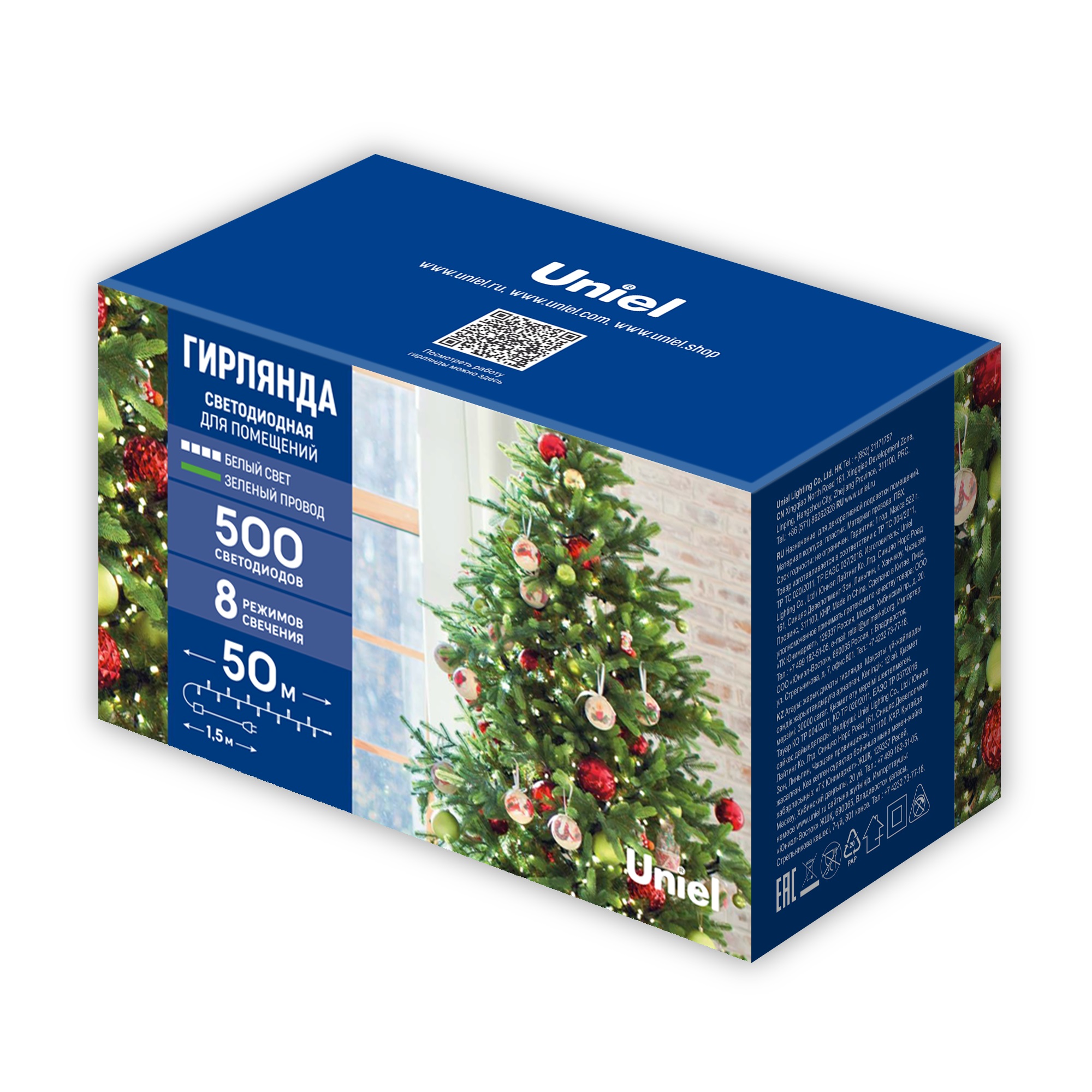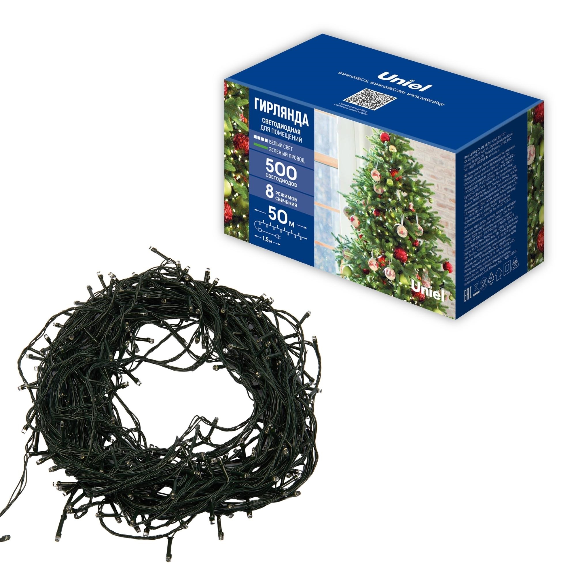 Светодиодная гирлянда ULD-S5000-500/DGA WHITE IP20 предназначена для декоративной подсветки и праздничного оформления в помещении. Свет - белый. Цветовая температура 4000 К. Гирлянда изготовлена из пластика, цвет провода - зеленый. Гирлянда имеет 8 режимов свечения - волнообразный, последовательный, перетекающий, бегущая вспышка, затухающий, мерцающий, постоянный и комбнированный (воспроизводит все режимы по очереди). В комплект входит удобный контроллер для переключения режимов свечения.Температурный режим работы от -20 до +35 С˚, степень пылевлагозащиты IP 20. Длина гирлянды составляет 50 м, общее количество светодиодов - 500 шт. Благодаря использованию светодиодов общей мощностью 25 Вт, её отличительной особенностью является превосходная яркость и низкое энергопотребление. В комплекте сетевой кабель длиной 1,5 метра. Светодиодная гирлянда как элемент декора украсит в любое время года коттеджи, магазины, офисы, спортивные центры, а также привлечет внимание к витринам магазинов. Поставляется в картонной упаковке. Габариты гирлянды - ДхШхВ 50000х30х15 мм. Вес изделия - 900 г. Гарантия от производителя - 1 год. Срок службы - 30 000 часов.