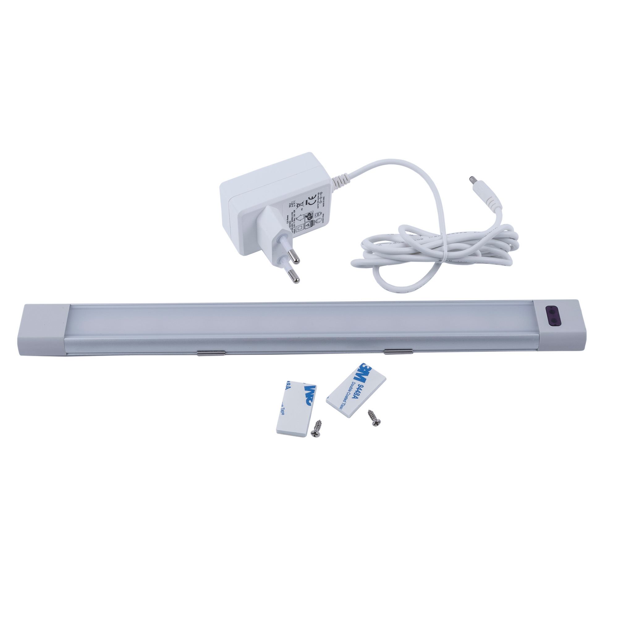 Светильник, комплект креплений для накладного монтажа, сетевой шнур 1,8м с блоком питания, инструкция по эксплуатации/гарантийный талон