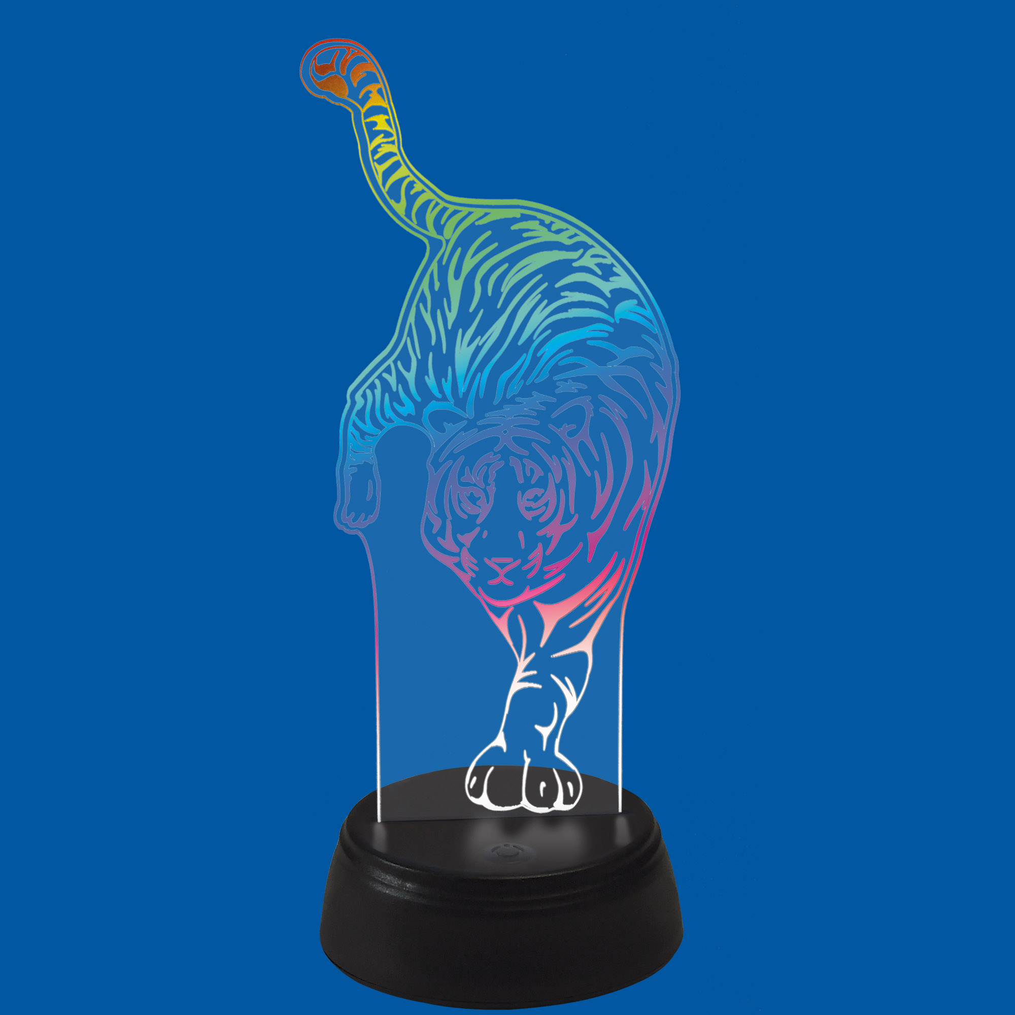 Светильник декоративный с эффектом 3D Тигр на батарейках ULI-M506 RGB/3AA TIGER/BLACK предназначен для украшения интерьера. Благодаря высокотехнологичному дизайну, светильник создает иллюзию объемного изображения. Удобная кнопка управления расположена на основании светильника. Питание производится от 3 батереек АА (в комплект не входят) или с помощью USB (стандартный USB-провод входит в комплект). Длина кабеля - 1 м. Свечение - RGB (разноцветное). Тип свечения - статическое одним цветом или смена цветов. Светильник изготовлен из пластика, цвет корпуса - черный и прозрачный. Общее количество светодиодов - 5 шт. Мощность - 0,5 Вт. Степень пылевлагозащиты - IP20, диапазон рабочих температур от -5 до +35 °С. Декоративные светильники с 3D эффектом - оригинальное и стильное решение для украшения интерьера и праздничного декора. Поставляется в картонной упаковке. Габариты светильника - ДхШхВ 95х98х250 мм. Вес изделия - 156 г. Гарантия от производителя - 1 год. Срок службы - 30 000 часов.
