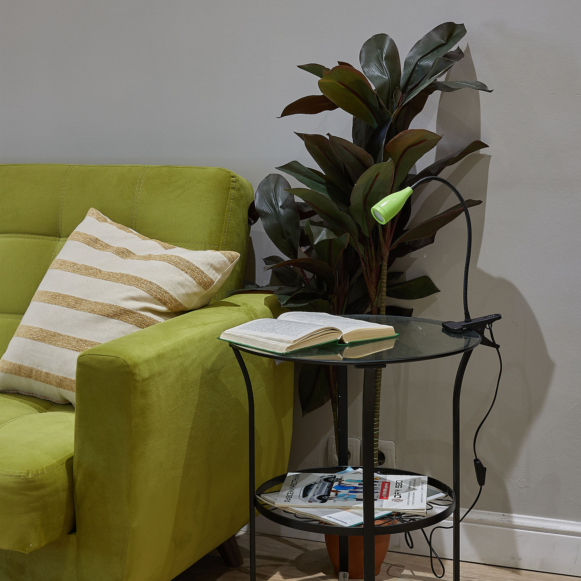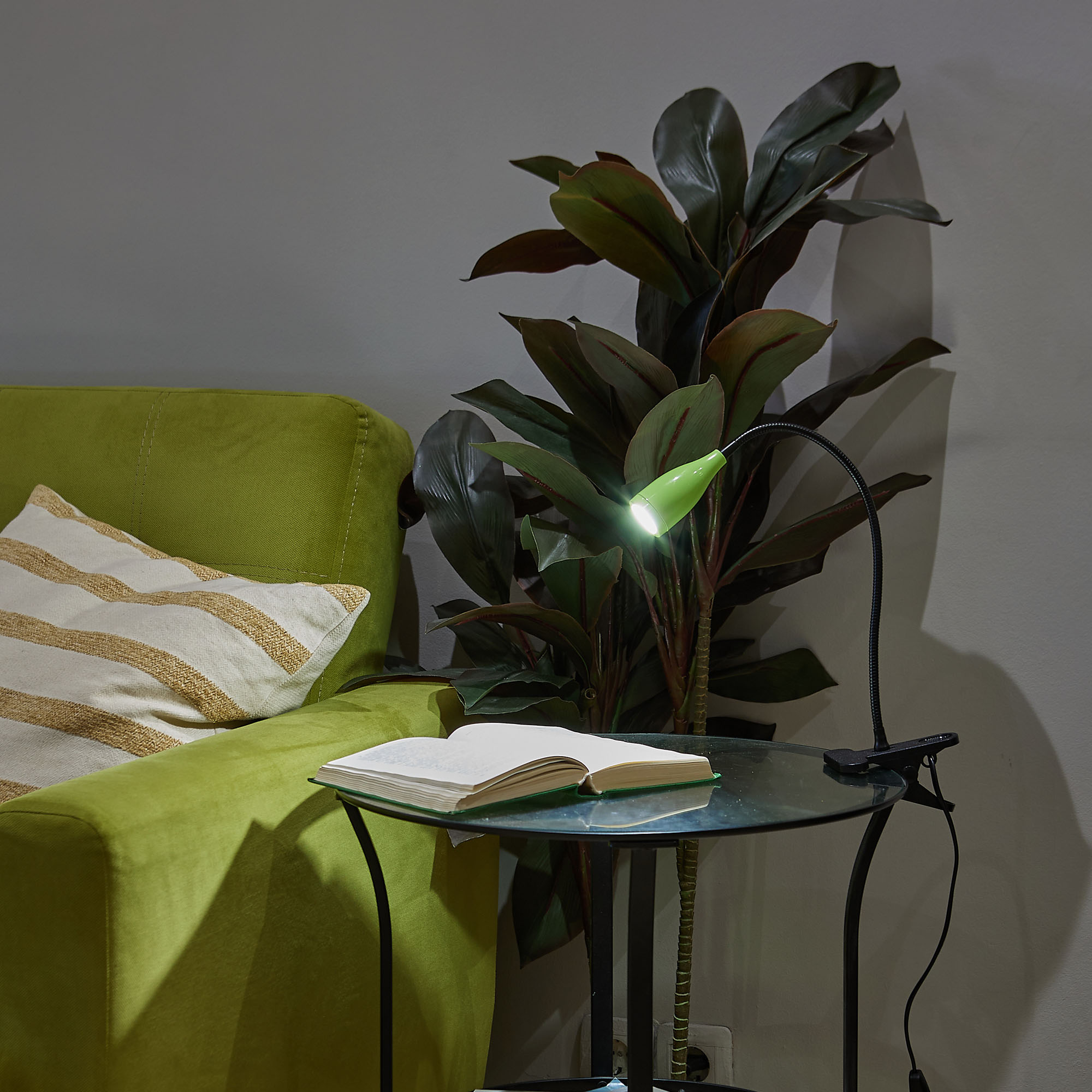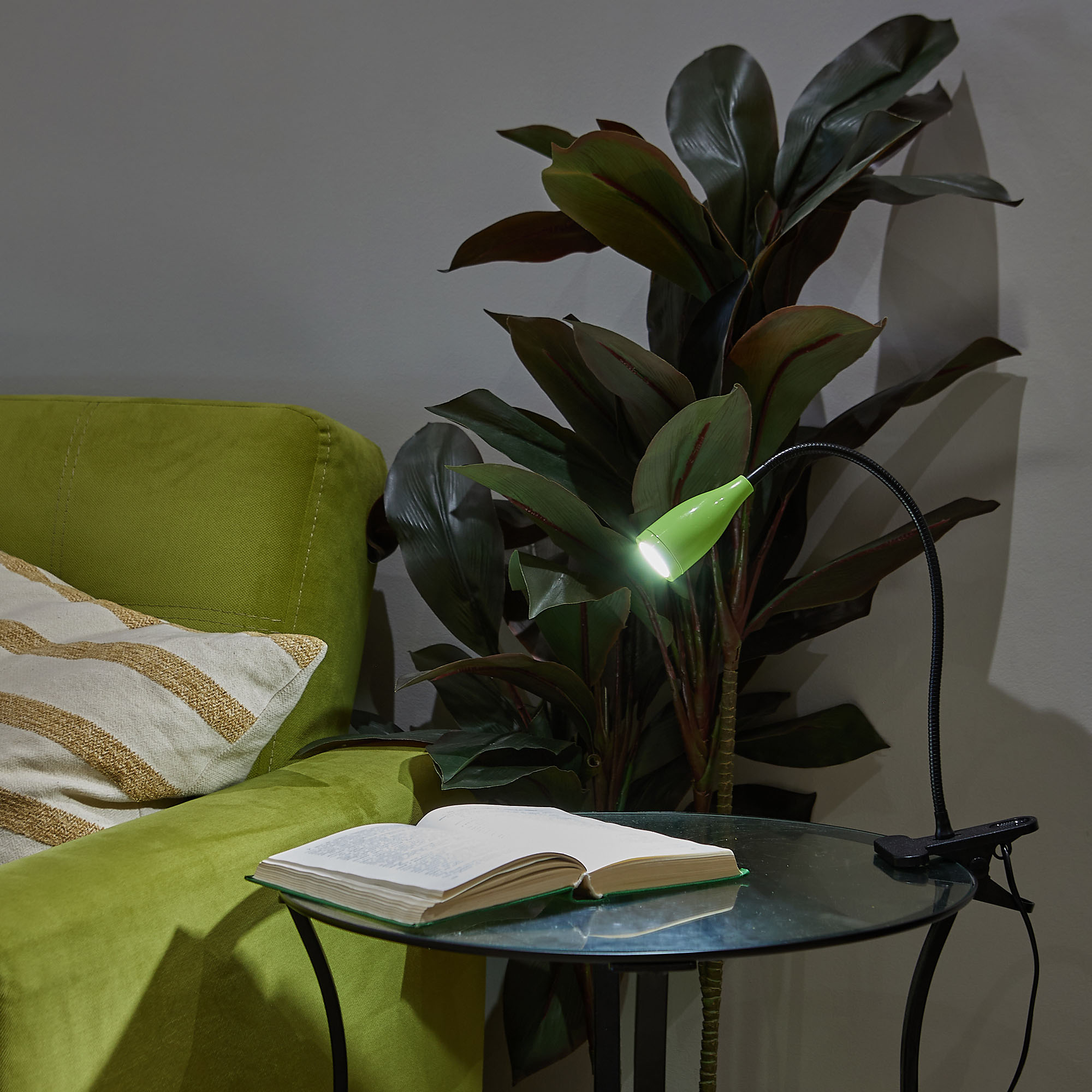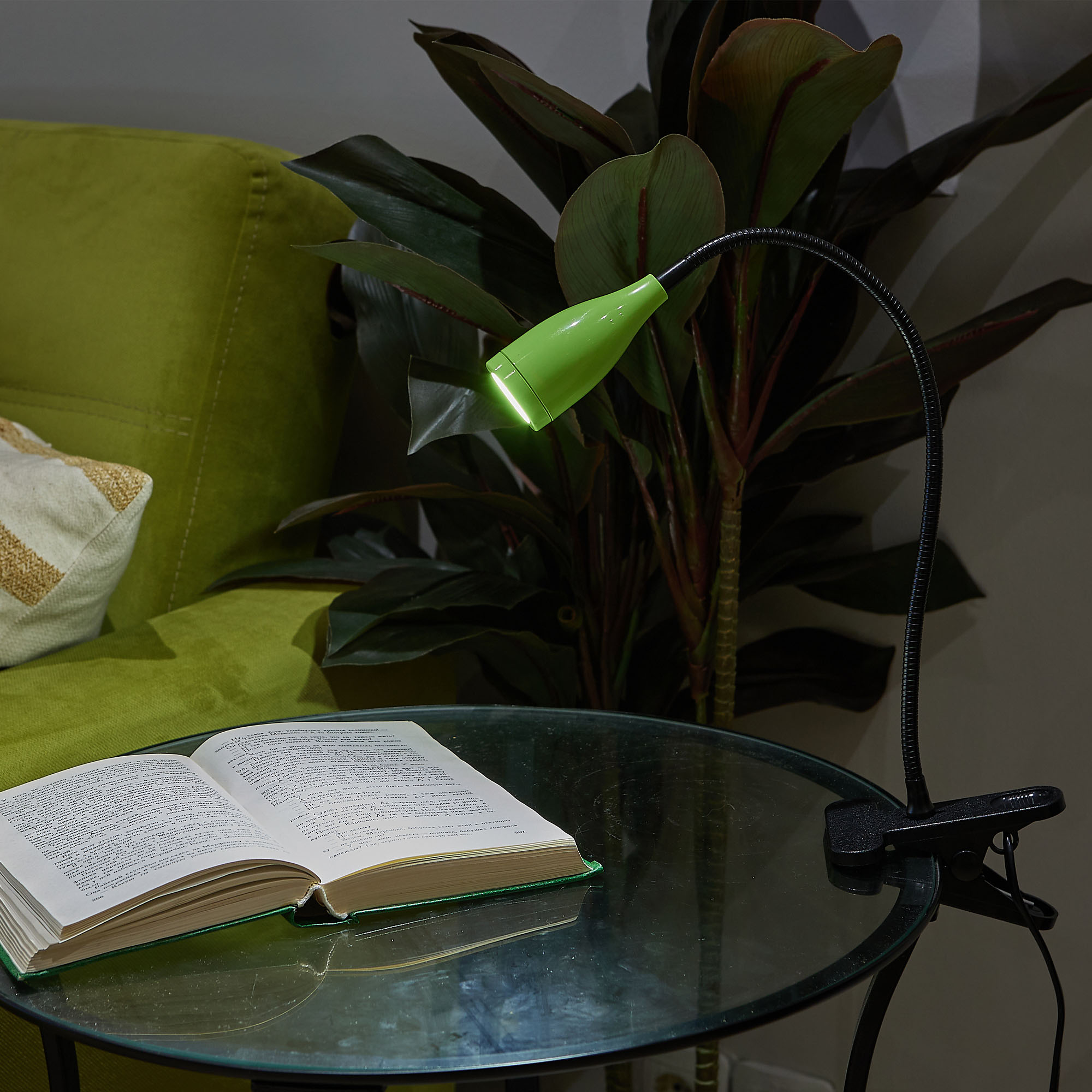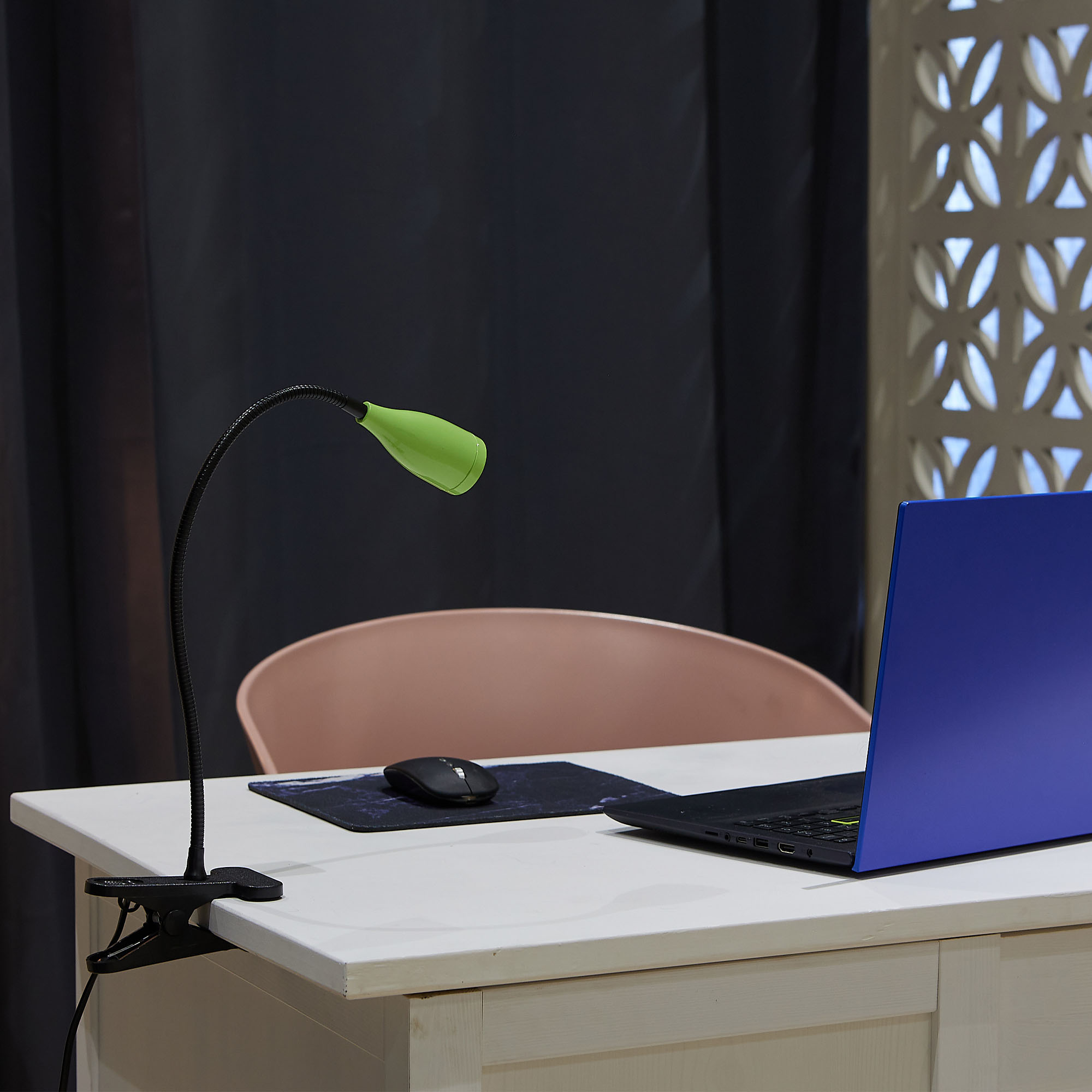 Светильник настольный светодиодный ULM-D501 4W/4000K GREEN на прищепке предназначен для освещения рабочего места. Гибкая ножка позволяет регулировать угол наклона (поворот на 360°) и высоту светильника. Мощность 4 Вт. Свет - белый. Цветовая температура 4000 К. Световой поток - 380 лм. Угол светового потока - 120°. Степень пылевлагозащиты IP20. Светильник изготовлен из ABS пластика и стали. Цвет корпуса - зеленый. Удобное крепление на прищепке позволяет с легкостью зафиксировать прибор на любой плоской поверхности. Компактный и современный светильник украсит любое рабочее место. Требуется подключение к электросети. Сетевой кабель длиной 1,4 м входит в комплектацию. Удобный механический выключатель расположен на проводе. Высота светильника - 320 мм. Вес изделия - 335 г. Гарантия - 2 года. Срок службы светильника 50 000 часов.
