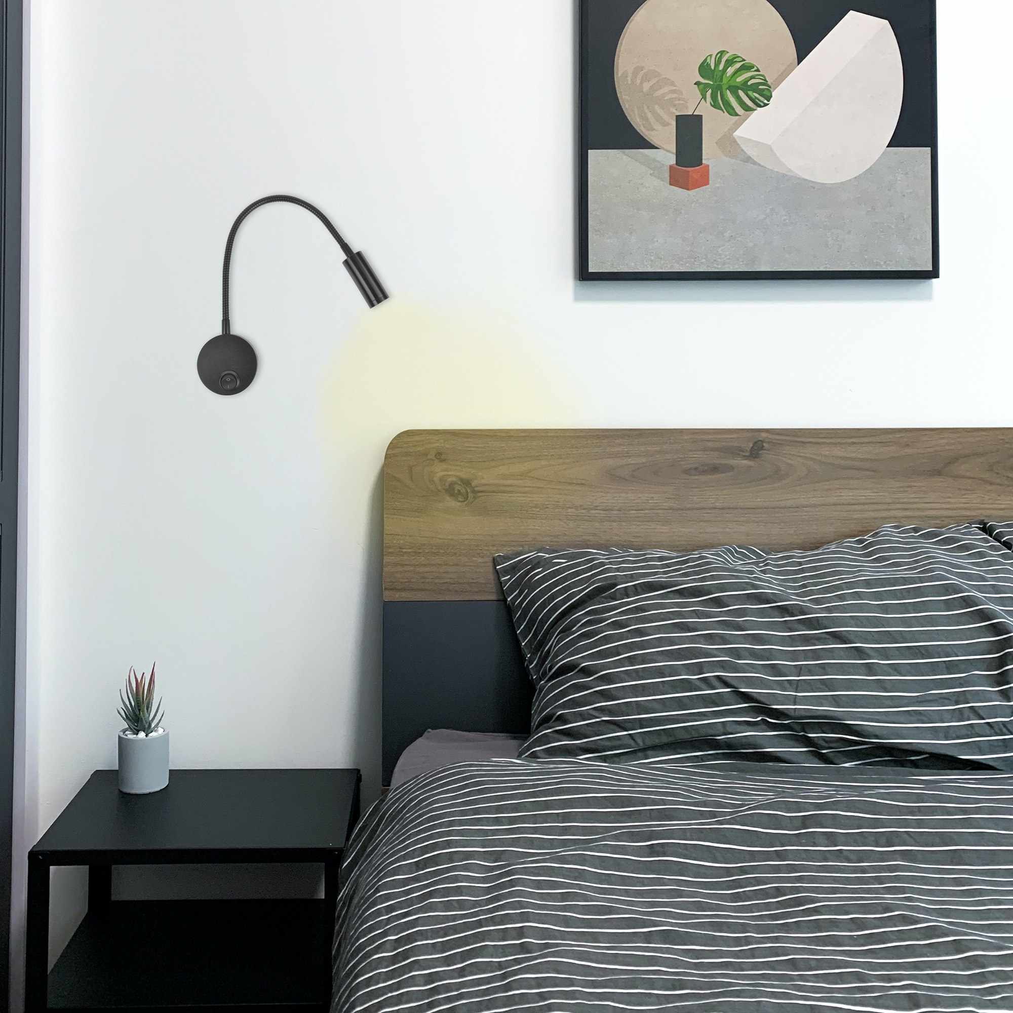Светильник светодиодный настенный гибкий для интерьерного освещения ULT-F21-3W/4000K IP20 BLACK предназначен для подсветки прикроватного простанства, картин, зеркал и рабочей зозны. Светильник напрямую подключается к сети, имеет встроенный в корпус блок питания. Свет - белый. Светильник изготовлен из алюминия, цвет корпуса - черный. Гибкая ножка позволяет направить луч света в нужную сторону. Степень пылевлагозащиты - IP20. Угол светового потока - 30°. Мощность - 3 Вт, что соответствует мощности лампы накаливания 25 Вт. Световой поток - 200 лм. Цветовая температура 4000 К. Выключатель расположен на основании светильника. Настенный светодиодный светильник - отличное решение для декоративной и акцентной подсветки в интерьере. Источником света являются светодиоды, которые не нагревают воздух при работе, дают ровное свечение без мерцания. Габариты светильника - ДхШхВ 65х28х410 мм. Общий вес комплекта - 330 г. Гарантия от производителя - 2 года. Срок службы светильника - 10000 часов.