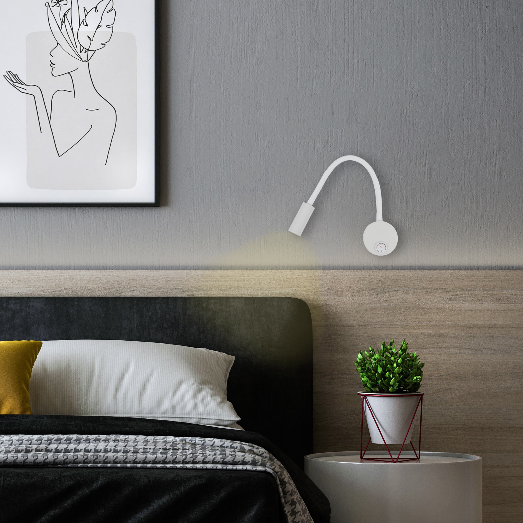 Светильник светодиодный настенный гибкий для интерьерного освещения ULT-F21-3W/4000K IP20 WHITE предназначен для подсветки прикроватного простанства, картин, зеркал и рабочей зозны. Светильник напрямую подключается к сети, имеет встроенный в корпус блок питания. Свет - белый. Светильник изготовлен из алюминия, цвет корпуса - белый. Гибкая ножка позволяет направить луч света в нужную сторону. Степень пылевлагозащиты - IP20. Угол светового потока - 30°. Мощность - 3 Вт, что соответствует мощности лампы накаливания 25 Вт. Световой поток - 200 лм. Цветовая температура 4000 К. Выключатель расположен на основании светильника. Настенный светодиодный светильник - отличное решение для декоративной и акцентной подсветки в интерьере. Источником света являются светодиоды, которые не нагревают воздух при работе, дают ровное свечение без мерцания. Габариты светильника - ДхШхВ 65х28х410 мм. Общий вес комплекта - 330 г. Гарантия от производителя - 2 года. Срок службы светильника - 10000 часов.