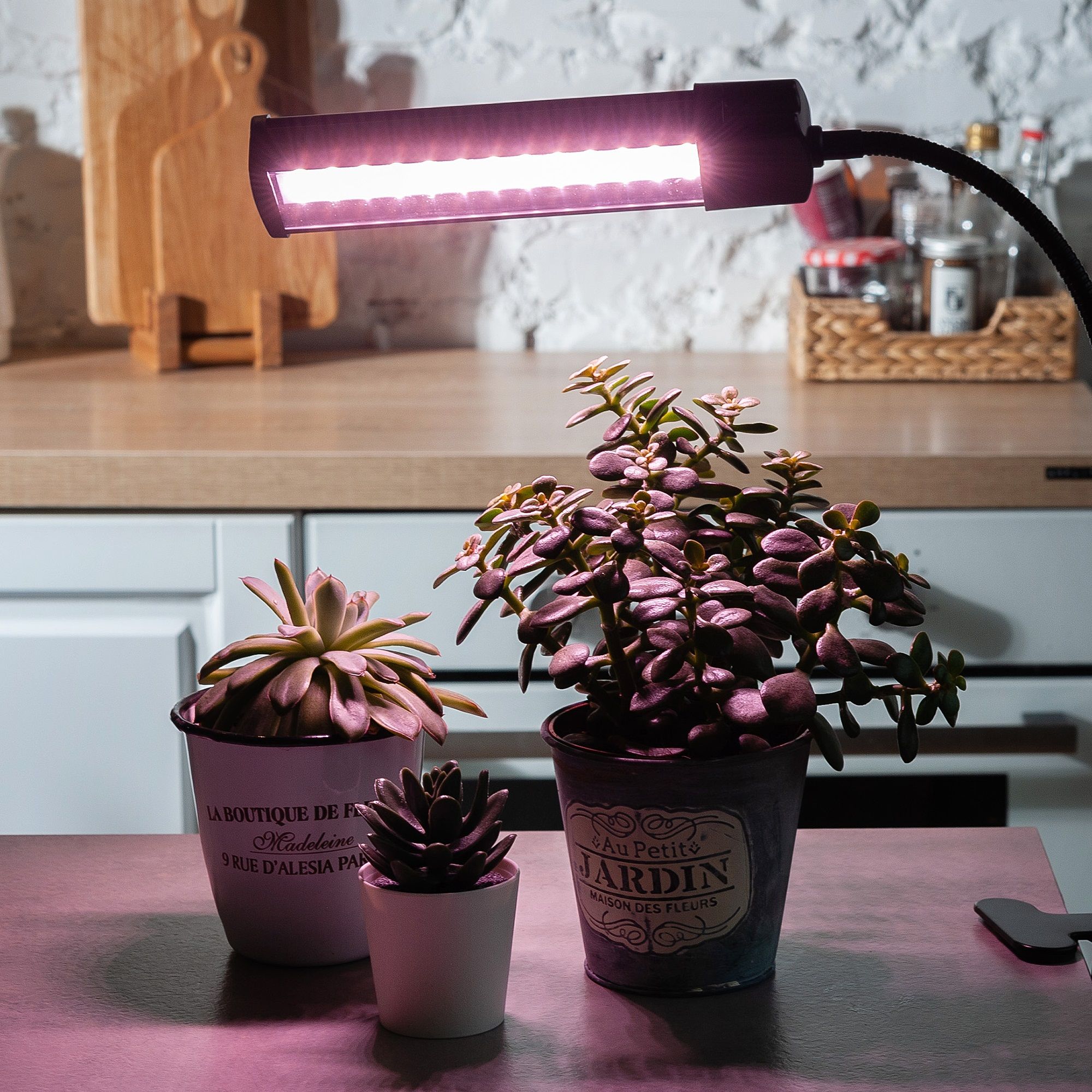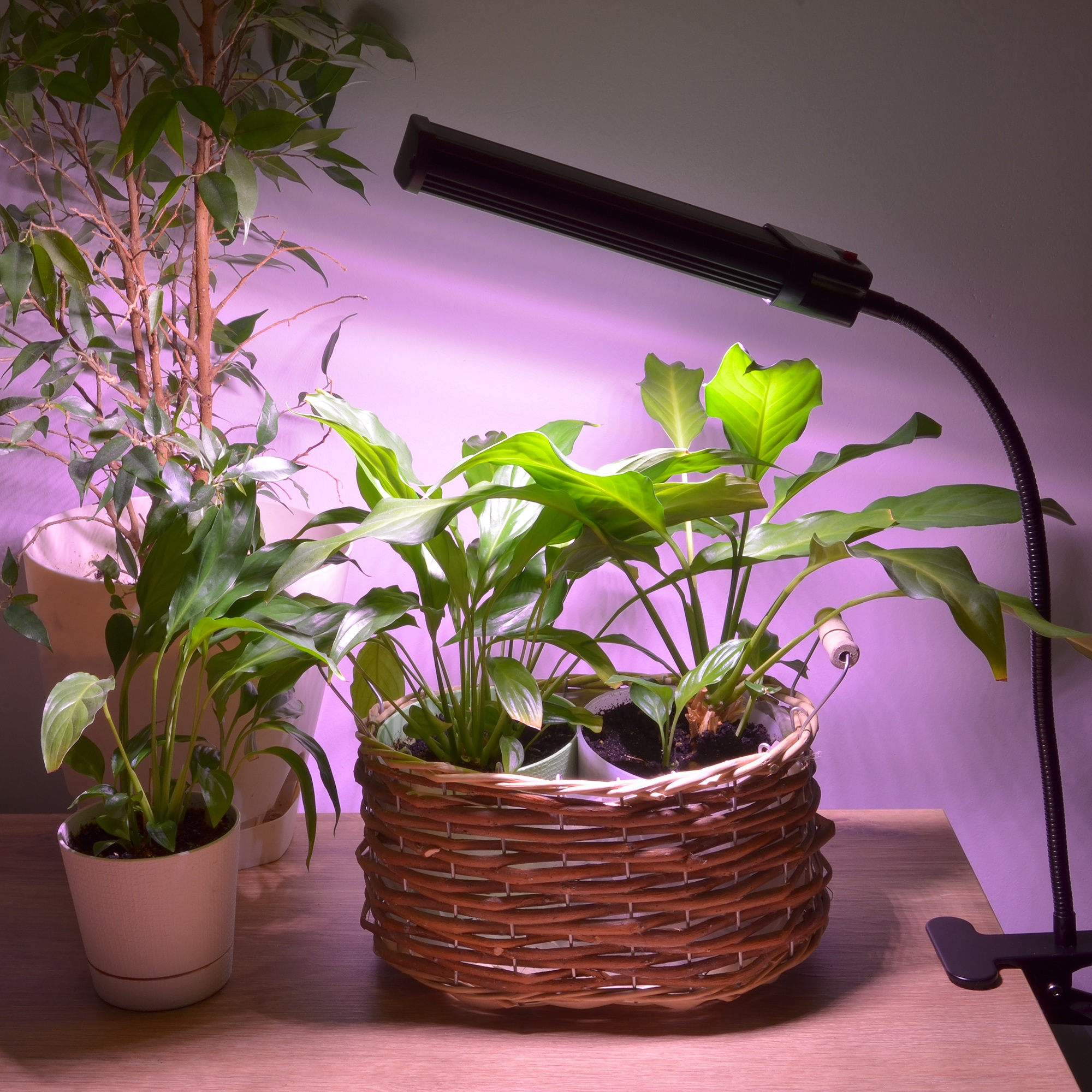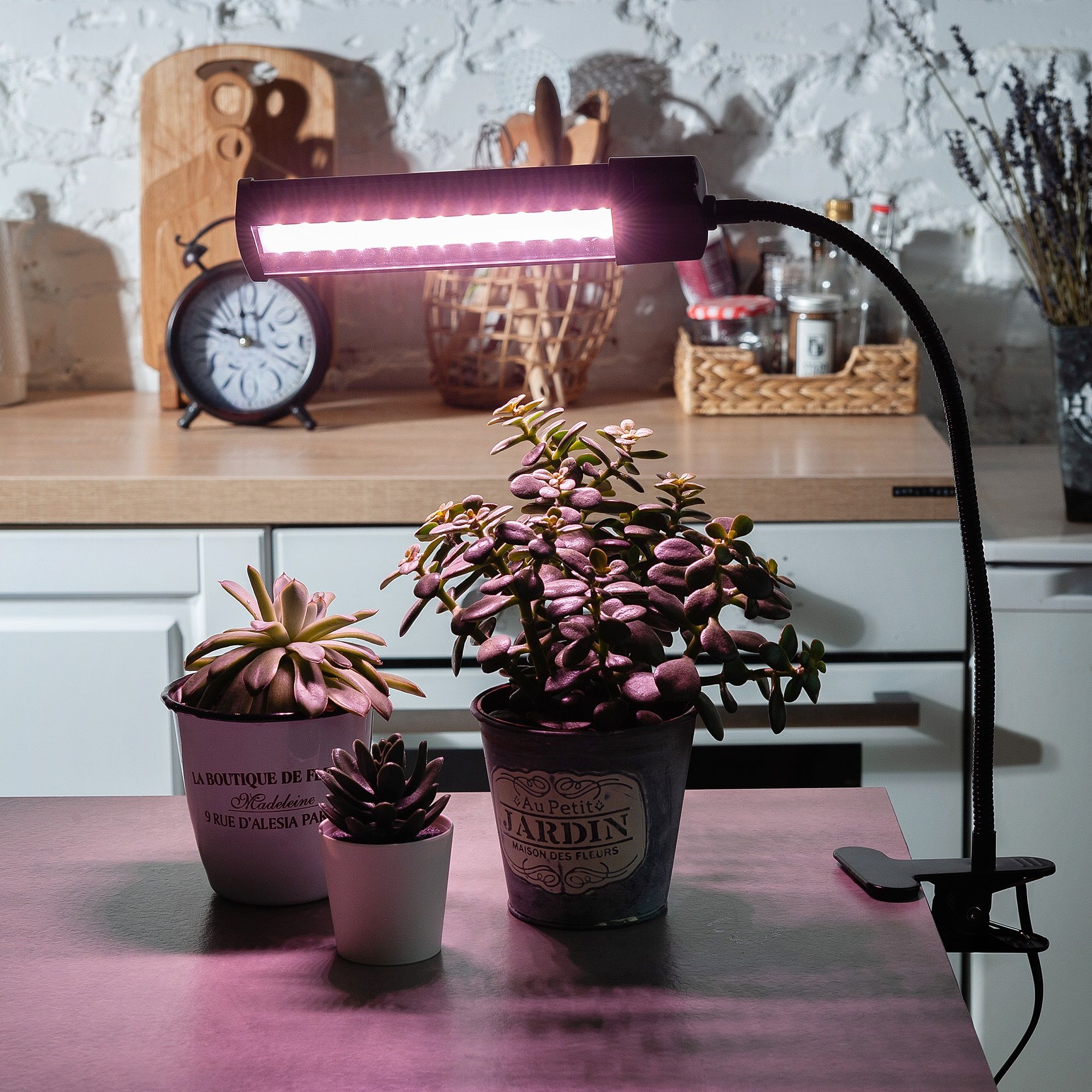 Светильник для растений светодиодный на прищепке ULT-P31-18W/SPLE/40 IP40 BLACK SINGLE от Uniel предназначен для освещения и досветки в помещениях декоративных растений, ароматных трав и рассады. Мягкое розовое свечение спектра SPLE повторяет спектр требующийся растениям для фотосинтеза. Фитосветильник прост в установке. Гибкая ножка позволяют напралять свет плафона в пределах 360°. С помощью удобной прищепки светильник легко закрепить на любой поверхности. На корпусе имеется выключатель. Высота светильника 690 мм, длина гибкой ножки - 400 мм, вес 592 г. Источником света являются светодиоды, которые не нагревают воздух при работе и экономят электроэнергию. Класс энергопотребления А+. Срок службы светильника светодиодного - 30 000 часов. Длинный шнур питания - 1,2 метра. Гарантия на светильник составляет 2 года.