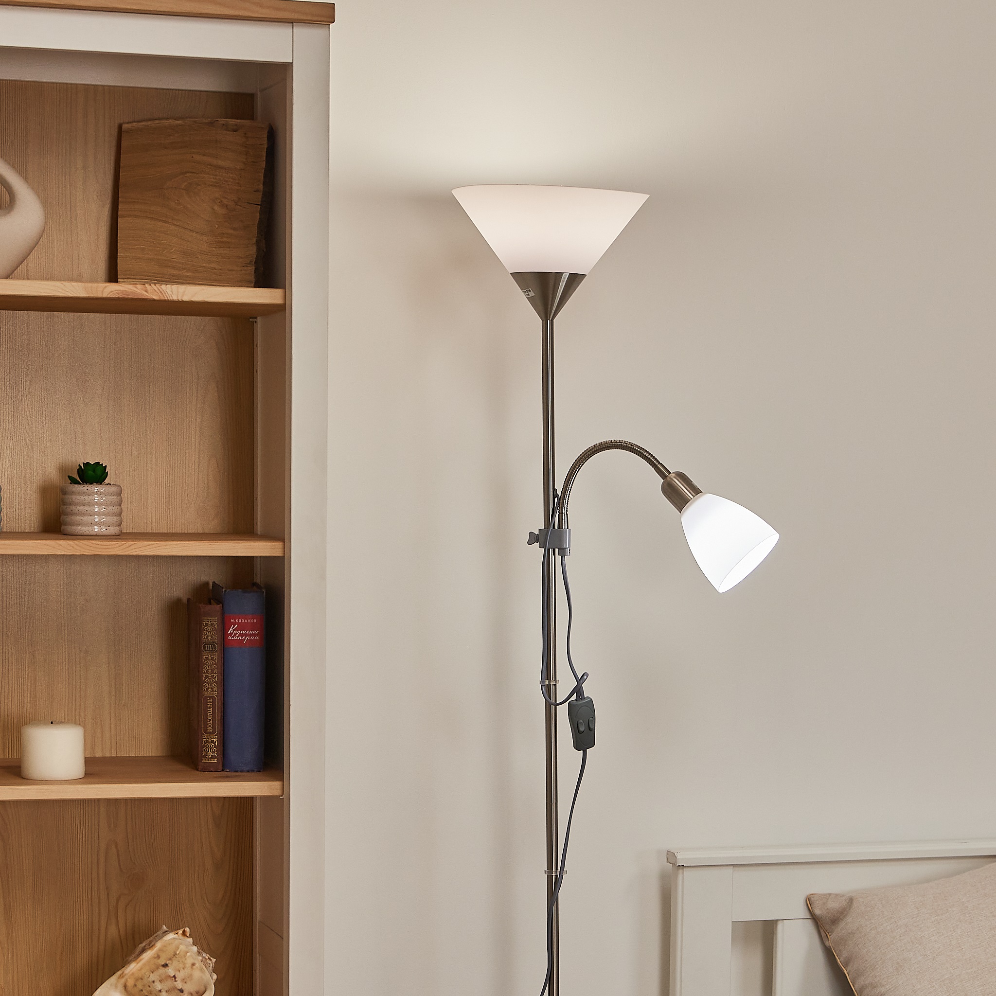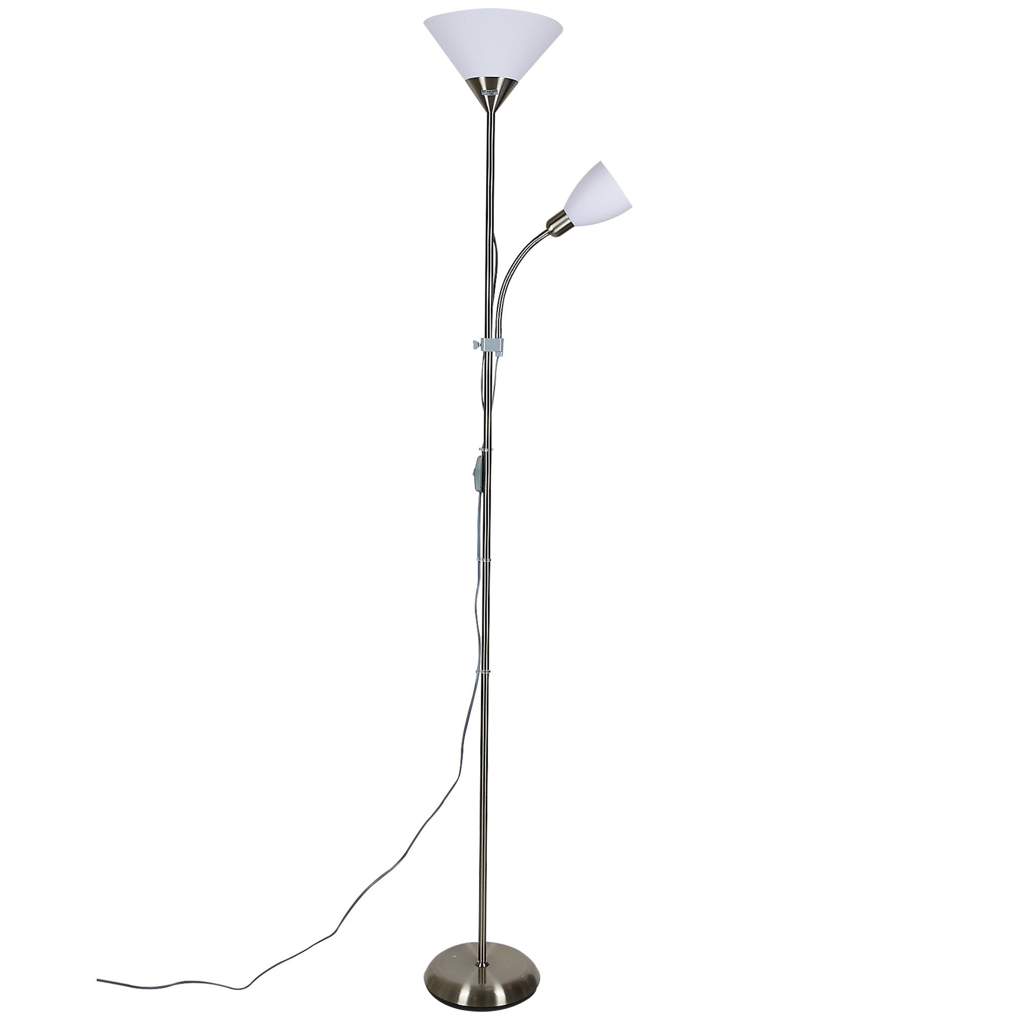 Торшер напольный под лампу Е27 и Е14 UML-T520 E27+E14 SILVER/WHITE предназначен для освещения индивидуального пространства для работы и отдыха в помещении. Корпус торшера изготовлен из стали и пластика. Цвет корпуса - серебристый и белый. Совместим с лампами с цоколями Е27 и Е14, подходят люминесцентные, светодиодные и лампы накаливания максимальной мощностью до 60 Вт. Угол светового потока - 360°. В комплект входит сетевой кабель длиной 2,2 м. Размер основания - 230 мм. Стильный и лаконичный дизайн торшера украсит любой интерьер. Способ установки - напольный. Удобный механический выключатель расположен на проводе. Высота торшера - 1780 мм. Вес изделия - 3600 г. Гарантия от производителя - 2 года. Срок службы - 50000 часов.