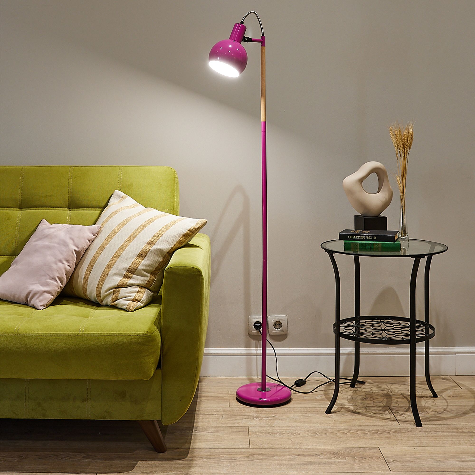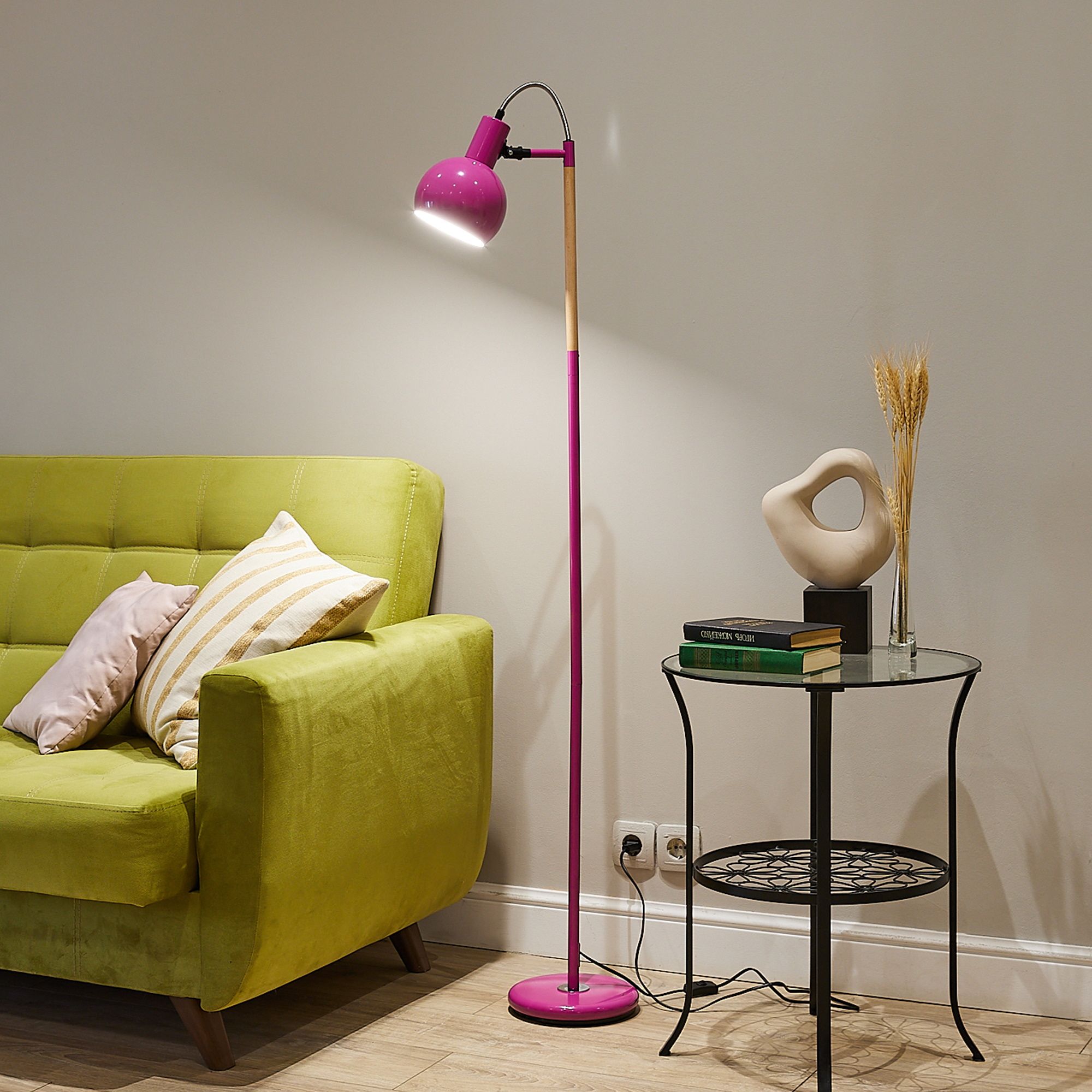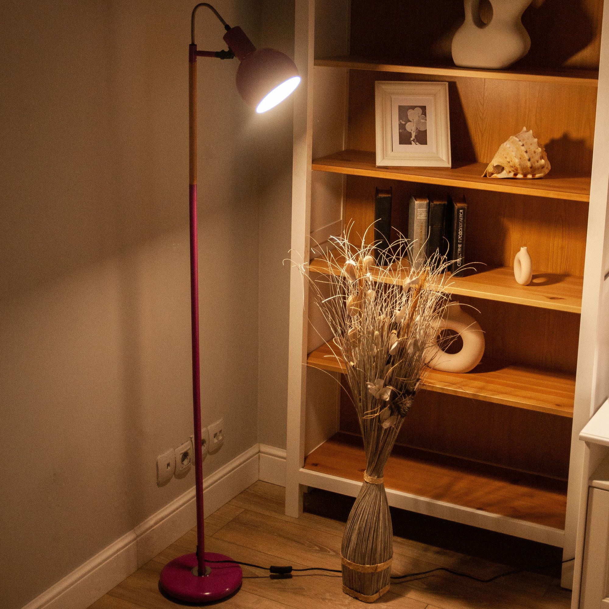 Торшер напольный под лампу Е27 UML-T702 E14 PINK предназначен для освещения индивидуального пространства для работы и отдыха в помещении. Корпус торшера изготовлен из стали и пластика. Цвет корпуса - розовый. Торшер имеет регулировку наклона. Совместим с лампами с цоколем Е14, подходят люминесцентные, светодиодные и лампы накаливания максимальной мощностью до 60 Вт. Угол светового потока - 120°. В комплект входит сетевой кабель длиной 1,5 м. Размер основания - 220 мм. Стильный и лаконичный дизайн торшера украсит любой интерьер. Способ установки - напольный. Удобный механический выключатель расположен на проводе. Высота торшера - 1500 мм. Вес изделия - 1400 г. Гарантия от производителя - 1 год. Срок службы - 50000 часов.
