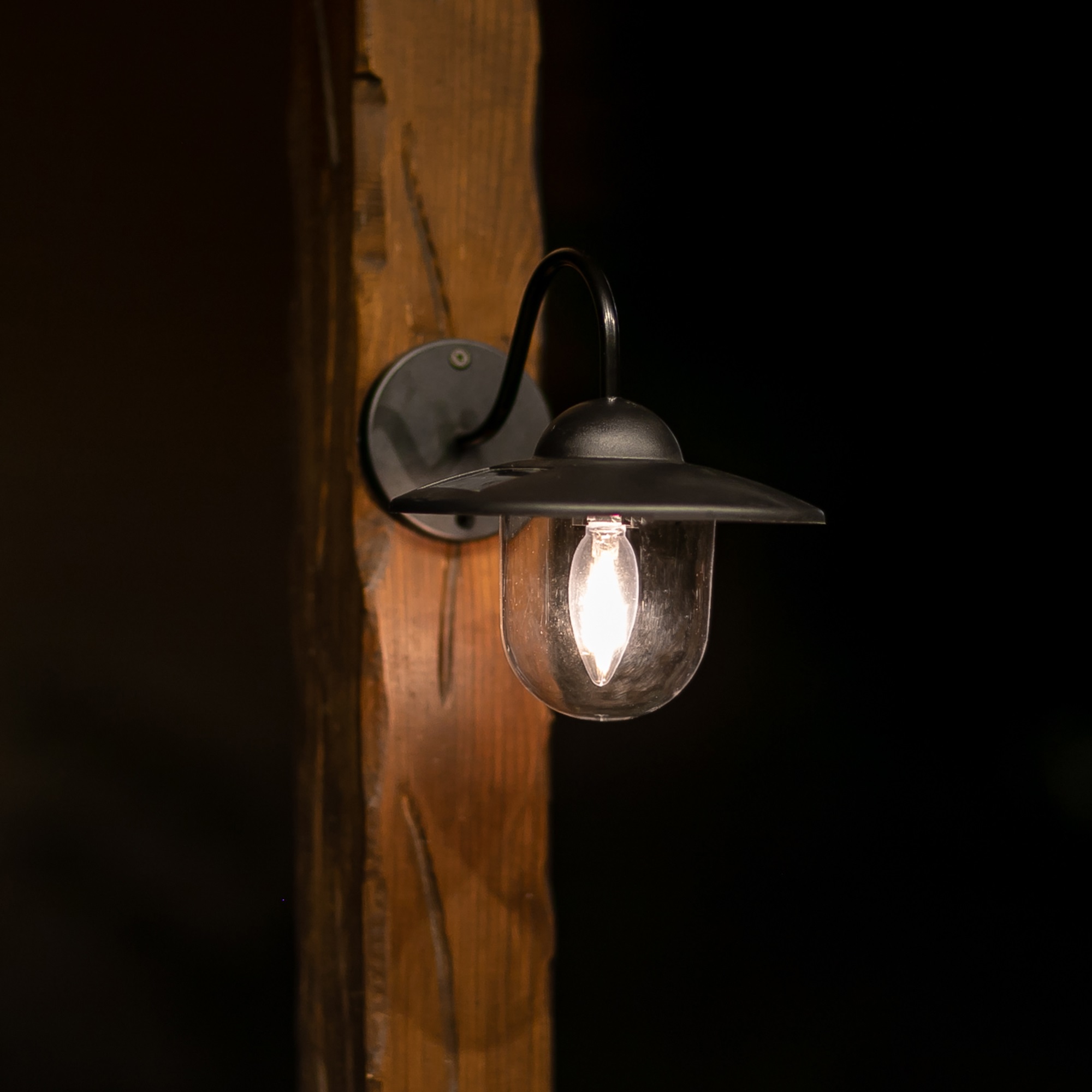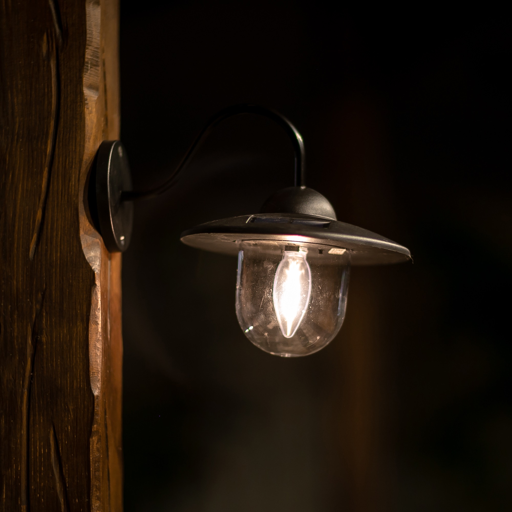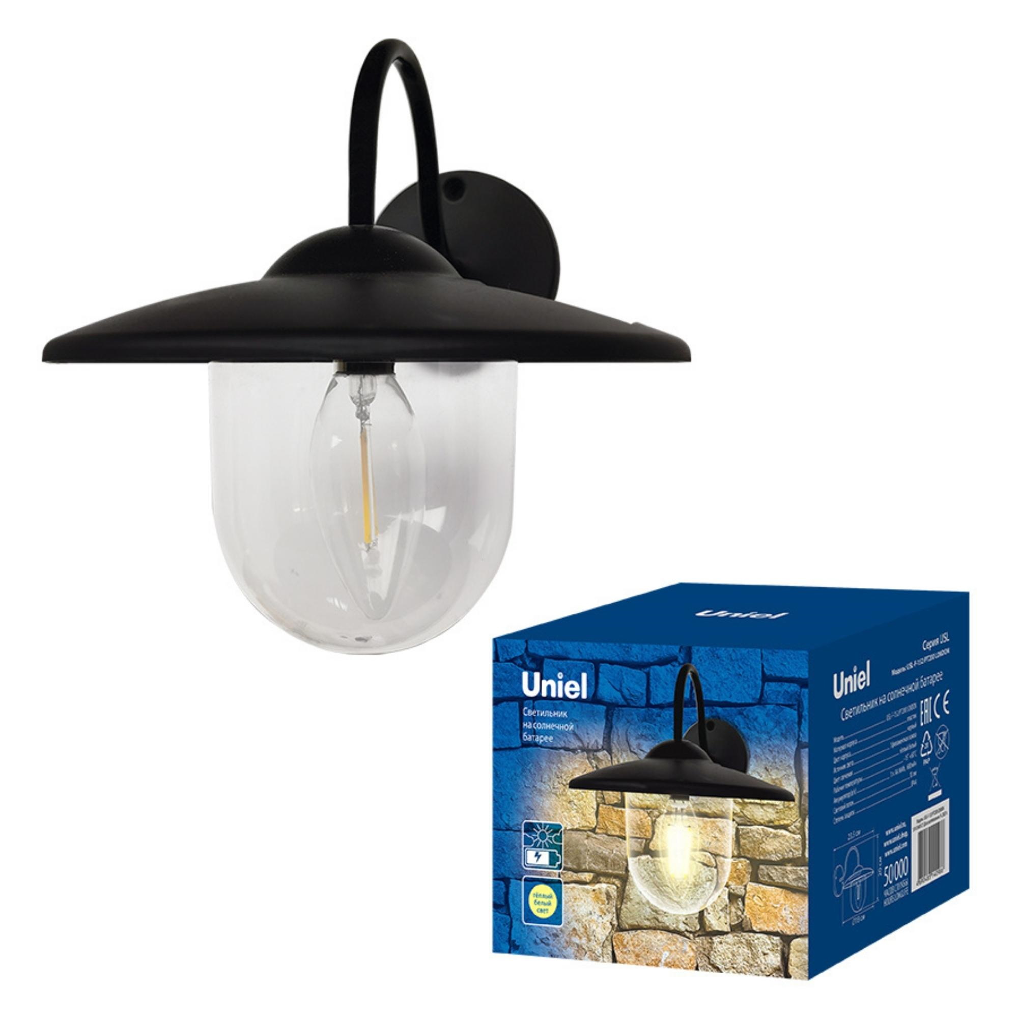 Настенный уличный светильник на солнечной батарее USL-F-152/PT200 LONDON предназначен для декоративной подсветки фасадов и входных дверей. Прибор крепится на вертикальную поверхность. В комплект светильника вхоит филаментная лампа (1 шт) теплого белого света, которая имеет широкий угол рассеивания. Светильник предназначен для уличной подсветки, диапазон рабочих температур светильника от -20 до +35 °С . Изготовлен из легкого черного пластика с защитой от пыли и влаги IP44. Удобный выключатель располагается в плафоне под крышкой светильника. Лаконичный и стильный дизайн устройства подойдет для подсветки любой территории. Подключение к электросети не требуется. Встроенный аккумулятор 600 мАч, заряжается в светлое время суток с помощью солнечной панели. Полностью заряженный аккумулятор обеспечивает свечение до 8 часов. В комплект входит набор для монтажа. Габариты собранного устройства - ДхШхВ 200х200х250 мм. Общий вес комплекта 465 г. Гарантия - полгода. Срок службы светильника - 50 000 часов.