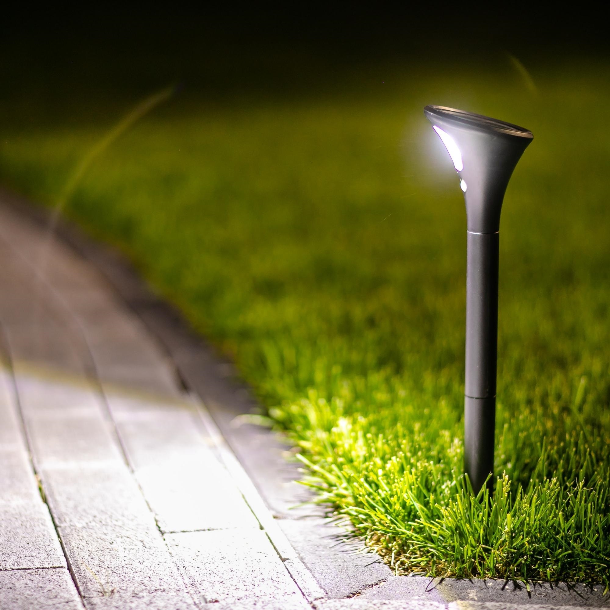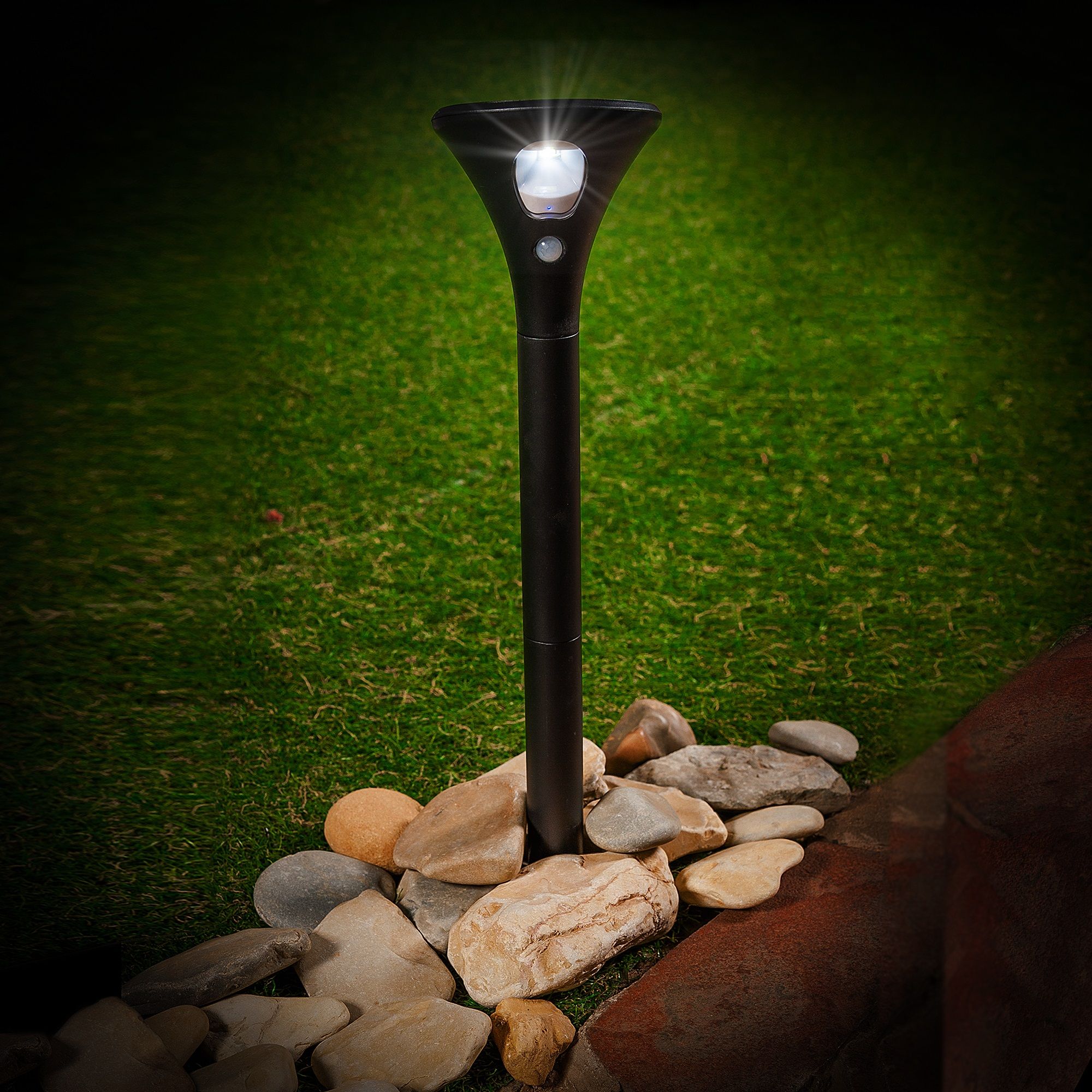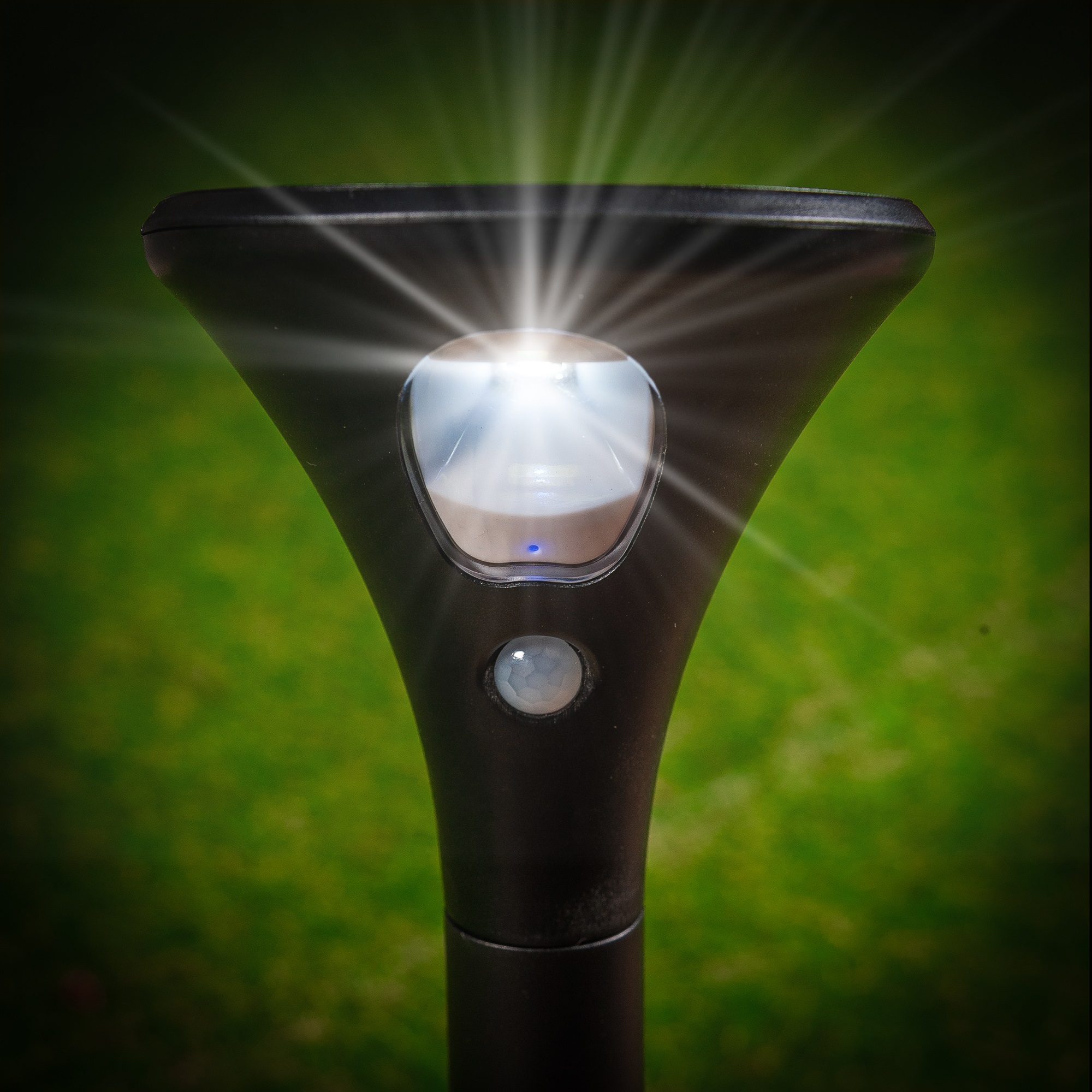 Садовый светильник на солнечной батарее USL-F-169/PT630 SENSOR с датчиком движения предназначен для уличного освещения и декоративной подсветки зданий, дорожек, высокого газона. Светильник работает в двух режимах: дежурное освещение (постоянная подсветка в темное время суток) и рабочее освещение (яркая подсветка, включается при срабатывании датчика движения). Радиус действия датчика движения — 5 м. Яркая подсветка продолжает работать еще 30 сек после окончания движения в радиусе действия датчика. В светильнике используется один светодиод, цвет свечения - белый. Корпус светильника изготовлен из черного пластика, пылевлагозащита - IP44. Подключение к электросети не требуется. Диапазон рабочих температур светильника от -20 до +40 °C. В комплект поставки входят все необходимые элементы для сборки. Установка светильника осуществляется путем вкручивания колышка в грунт. На корпусе имеется удобный выключатель непостредственно под истоником света. Светильник легко установить в любое место путем вкручивания колышка в грунт. Встроенный аккумулятор 1000 мАч, заряжается в светлое время суток с помощью солнечной панели. Полностью заряженный аккумулятор обеспечивает свечение до 8 часов. Габариты собранного устройства - ДхШхВ 100х100х630 мм. Общий вес комплекта 317 г. Гарантия 1 год. Срок службы светильника - 50 000 часов.