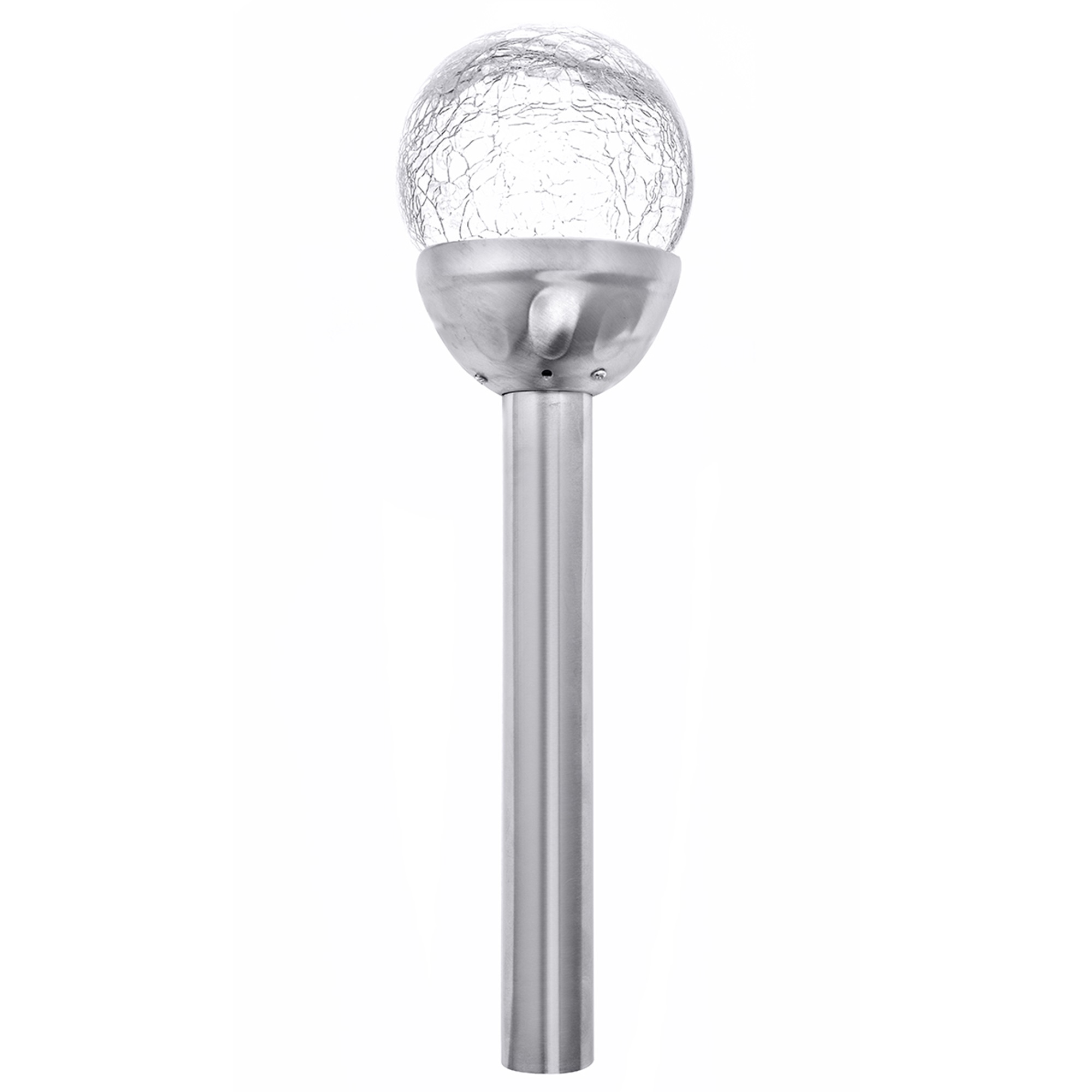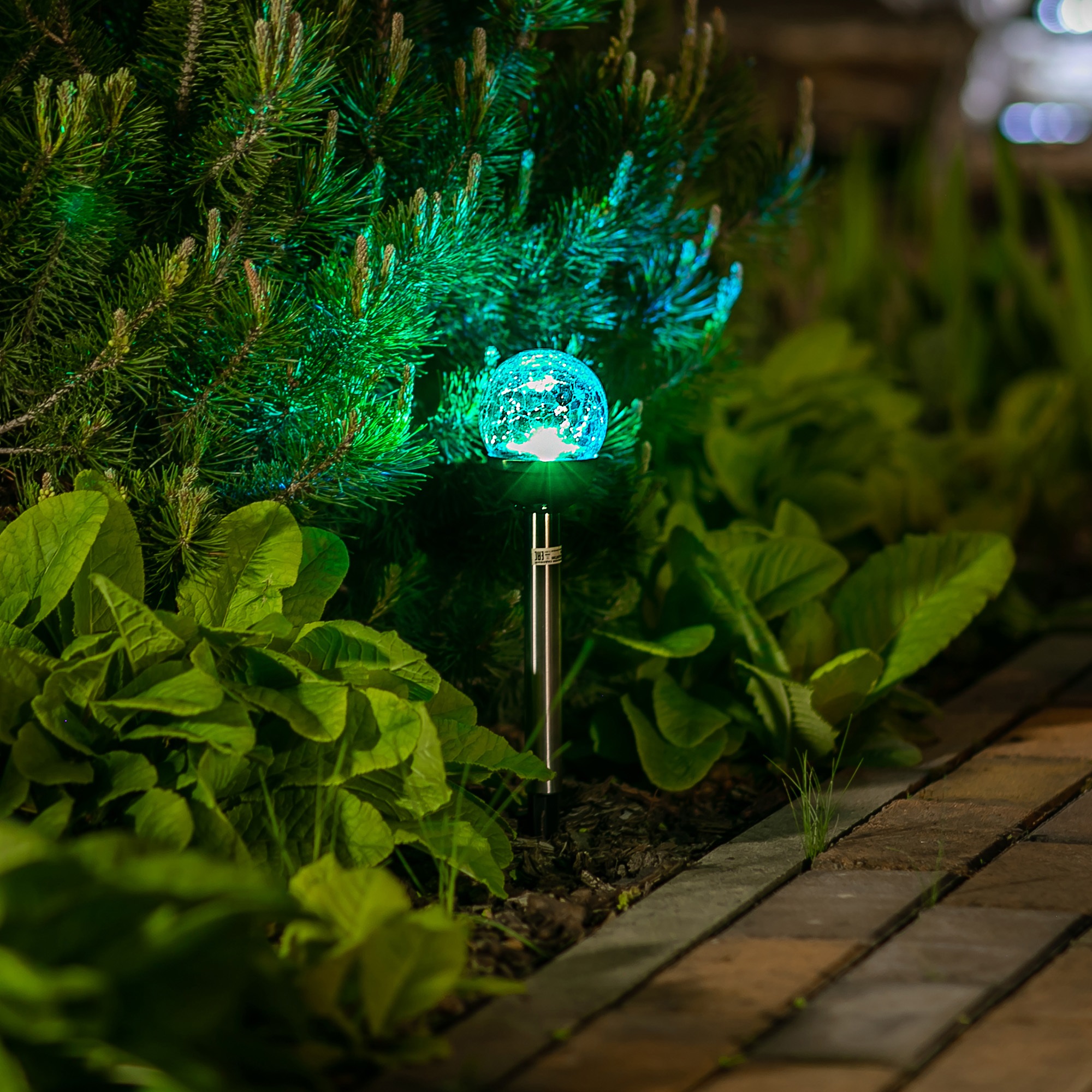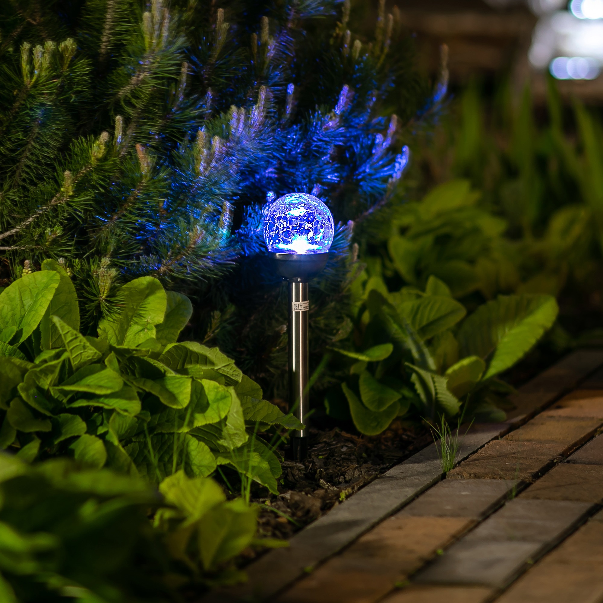Садовый светильник на солнечной батарее USL-M-063/MT390 Bellatrix серии Modern предназначен для декоративной подсветки сада - для газонов, клумб, альпийских горок. Прибор устанавливается вертикально в землю с помощью пики. В светильнике используется светодиод (RGB, 1 шт) разноцветного свечения с плавной сменой цветов. Светильник предназначен для уличной подсветки, диапазон рабочих температур светильника от -20 до +35 °С. Корпус светильника изготовлен из нержавеющей стали, цвет — серебряный, степень пылевлогозащиты IP44. Удобный выключатель расположен под крышкой плафона. Подключение к электросети не требуется. Встроенный аккумулятор 600 мАч, заряжается в светлое время суток с помощью солнечной панели. Полностью заряженный аккумулятор обеспечивает освещение до 8 часов. Габариты собранного устройства - ДхШхВ 80х80х390 мм. Общий вес комплекта 392 г. Гарантия - полгода. Срок службы светильника - 30 000 часов.