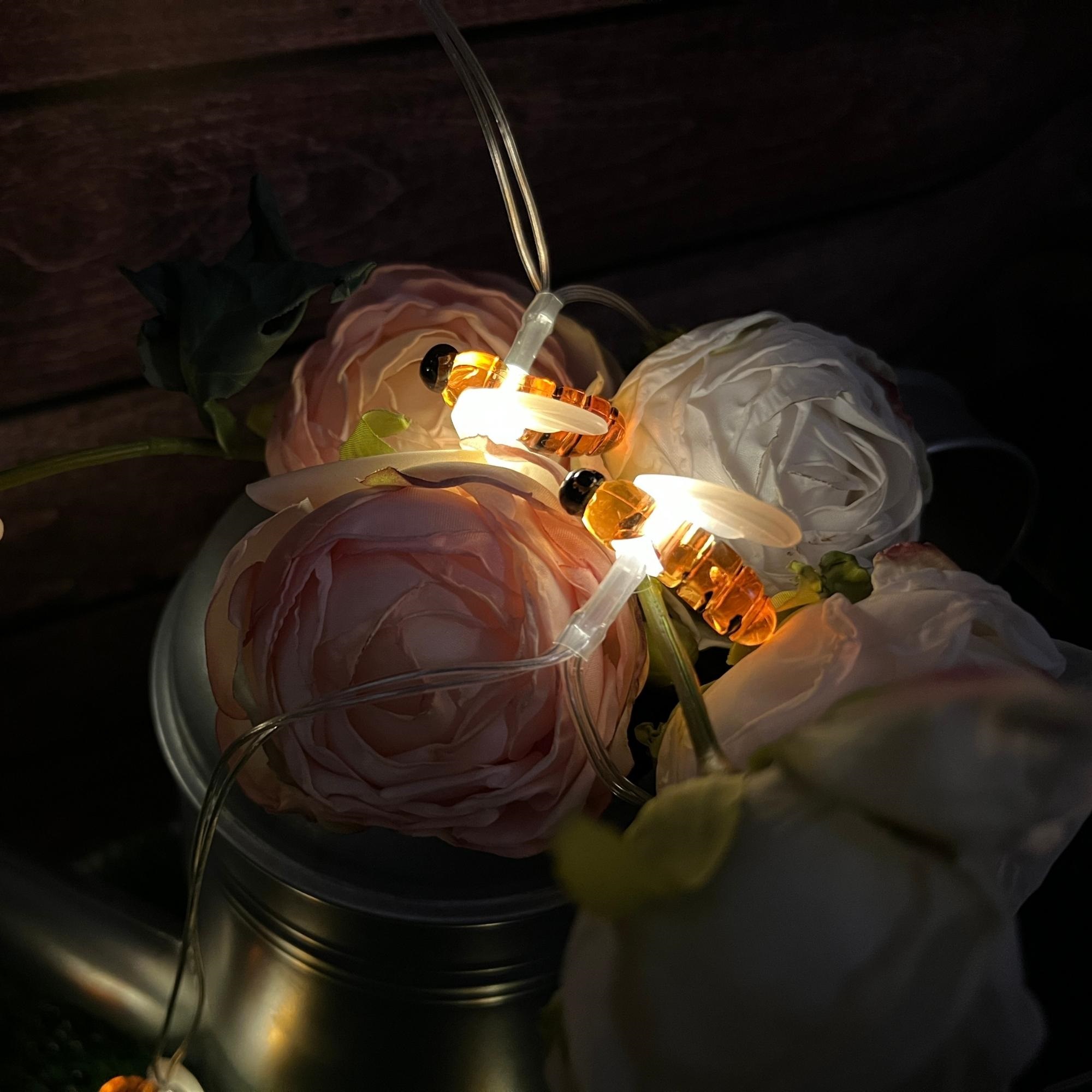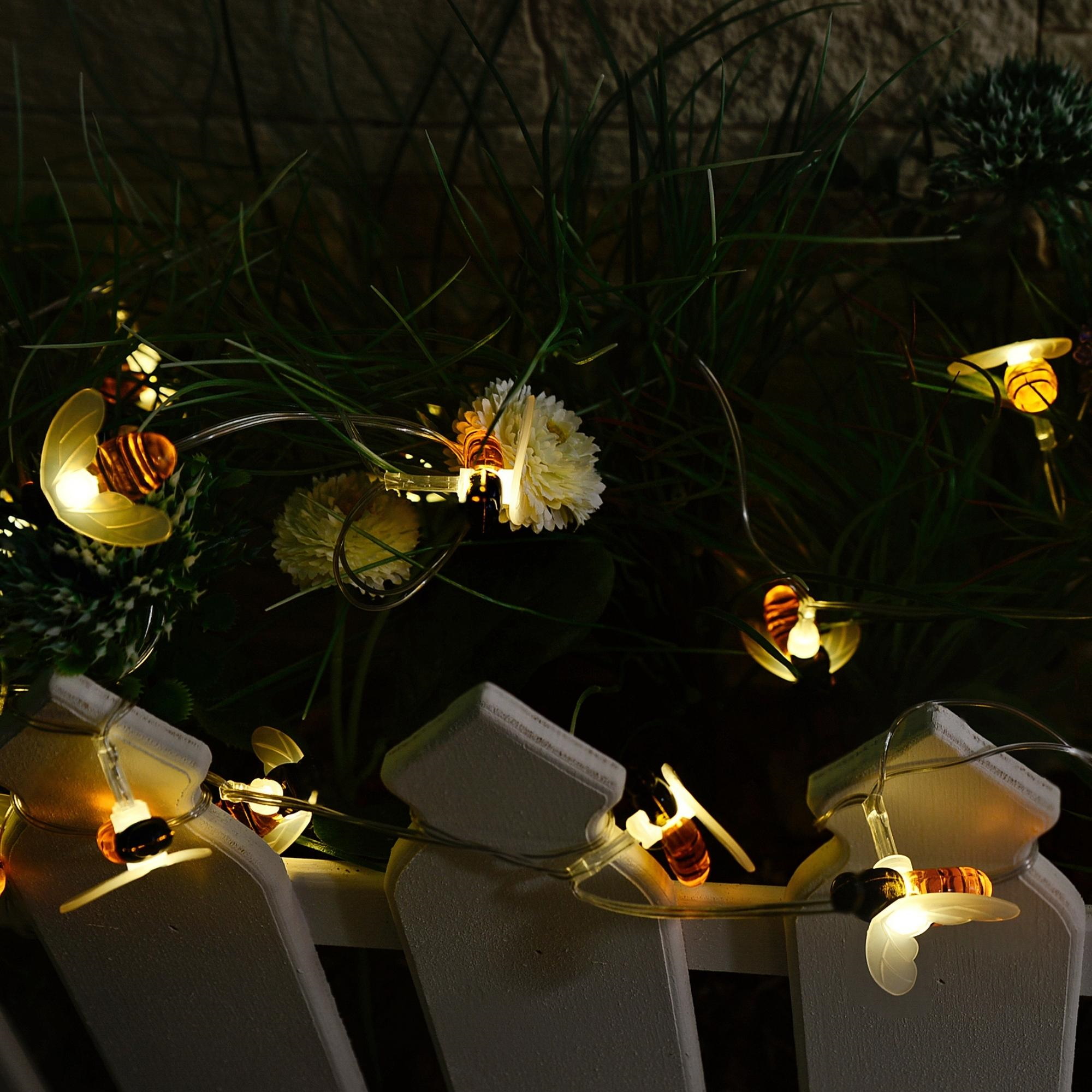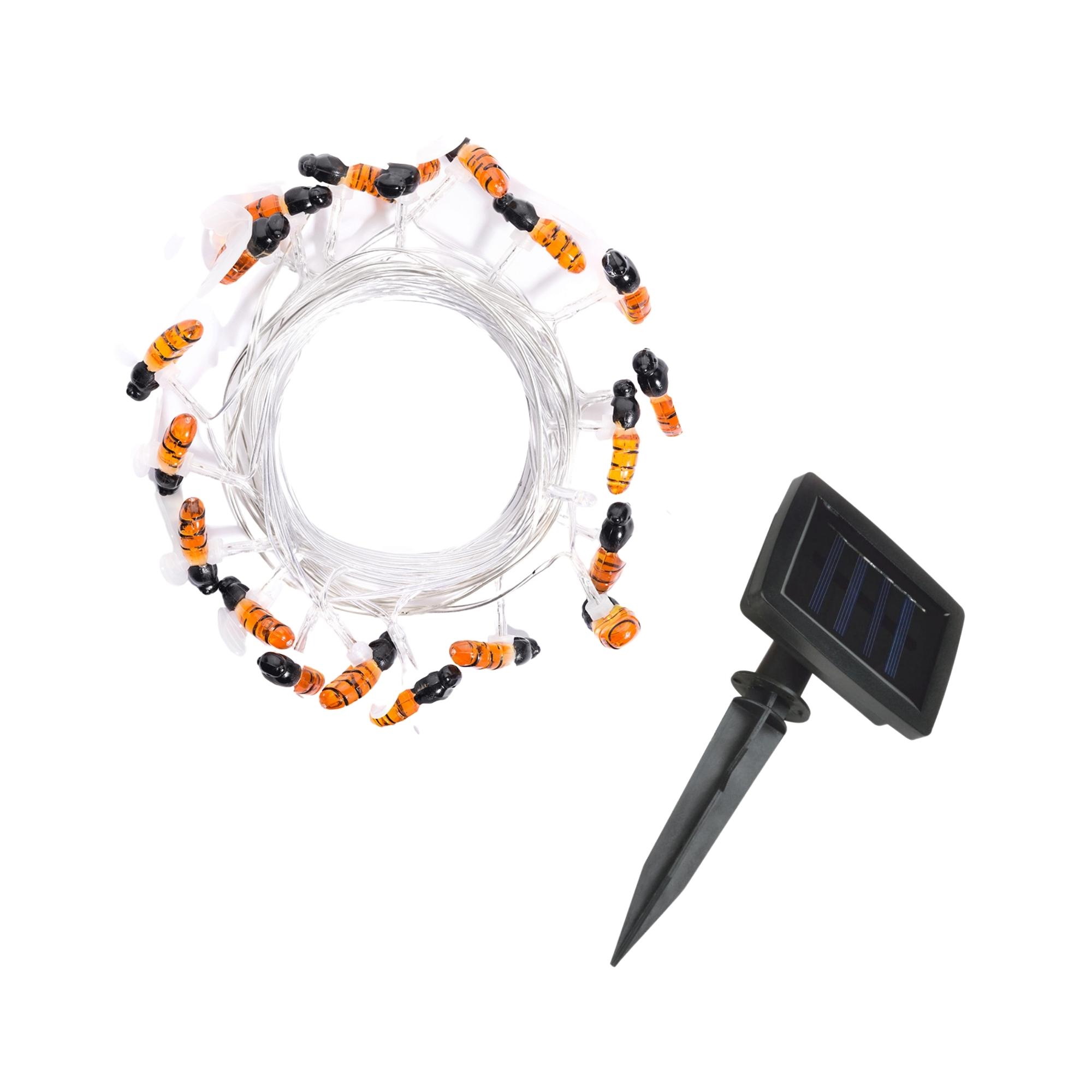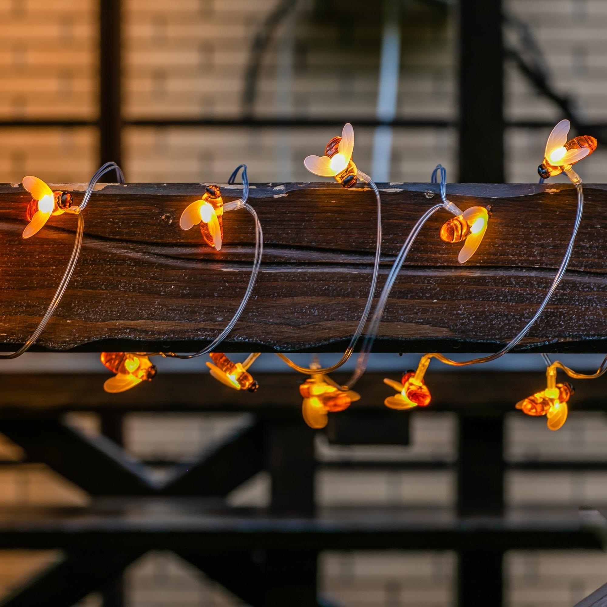 Садовая гирлянда на солнечной батарее «Пчелки» USL-S-127/PT4000 BEES предназначена для декоративной подсветки сада — деревьев, беседок и композиций на участке. Комплект представляет собой общий направляющий провод с присоединенными к нему светильниками в виде пчел. Солнечная панель устанавливается в землю с помощью колышка (в комплекте). В гирлянде используются светодиоды (20 шт). Два режима свечения: постоянное и мигание, цвет свечения — теплый белый. Гирлянда предназначена для уличной подсветки, диапазон рабочих температур - от -20 до +35 °С. Корпус каждого светильника изготовлен из пластика, степень пылевлагозащиты IP44. Гирлянда дополнит ландшафтный дизайн и станет украшением на праздник. Подключение к электросети не требуется. Встроенный аккумулятор 400 мАч, заряжается в светлое время суток с помощью солнечной панели. Полностью заряженный аккумулятор обеспечивает свечение до 8 часов. Удобный выключатель расположен на батарейном блоке. Длина гирлянды 3,8 м, длина провода 2 м. Габариты изделия - ДхШхВ 3800х100х190 мм. Общий вес комплекта 271 г. Гарантия - полгода. Срок службы гирлянды - 30 000 часов.