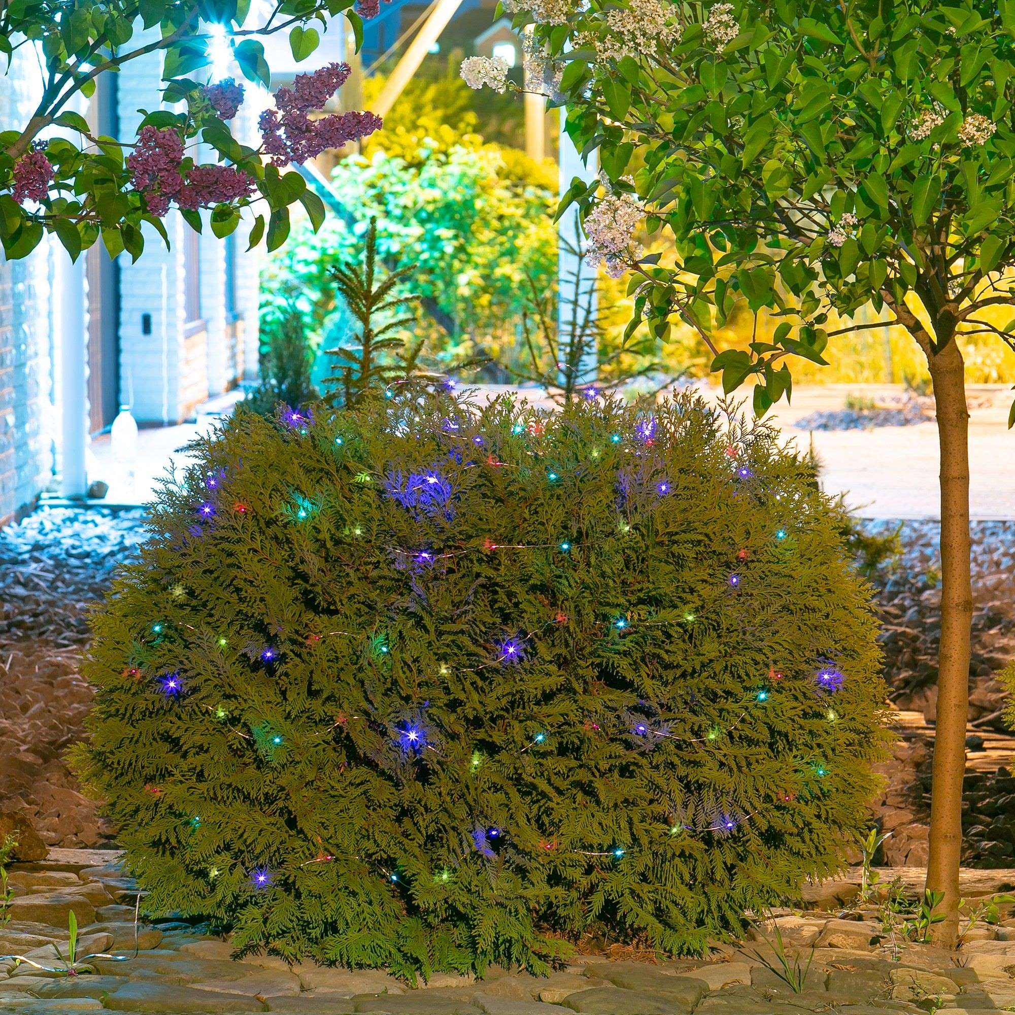 Садовая гирлянда на солнечной батарее «Роса» USL-S-128/PT9900 DEW предназначена для декоративной подсветки сада — деревьев, беседок и композиций на участке. Комплект представляет собой общий направляющий провод с интергированными микро-светодиодами. Солнечная панель устанавливается в землю с помощью колышка (в комплекте). В гирлянде используются светодиоды (100 шт). Два режима свечения: постоянное и мигание, цвет свечения — разноцветный (красный, желтый, зеленый, синий). Гирлянда предназначена для уличной подсветки, диапазон рабочих температур - от -20 до +35 °С. Гирлянда изготовлена из металла и пластика, степень пылевлагозащиты IP44. Гирлянда дополнит ландшафтный дизайн и станет украшением на праздник. Подключение к электросети не требуется. Встроенный аккумулятор 600 мАч, заряжается в светлое время суток с помощью солнечной панели. Полностью заряженный аккумулятор обеспечивает свечение до 8 часов. Удобный выключатель расположен на батарейном блоке. Длина гирлянды 9,9 м, длина провода 2 м. Габариты изделия - ДхШхВ 9900х100х190 мм. Общий вес комплекта 235 г. Гарантия - полгода. Срок службы гирлянды - 30 000 часов.