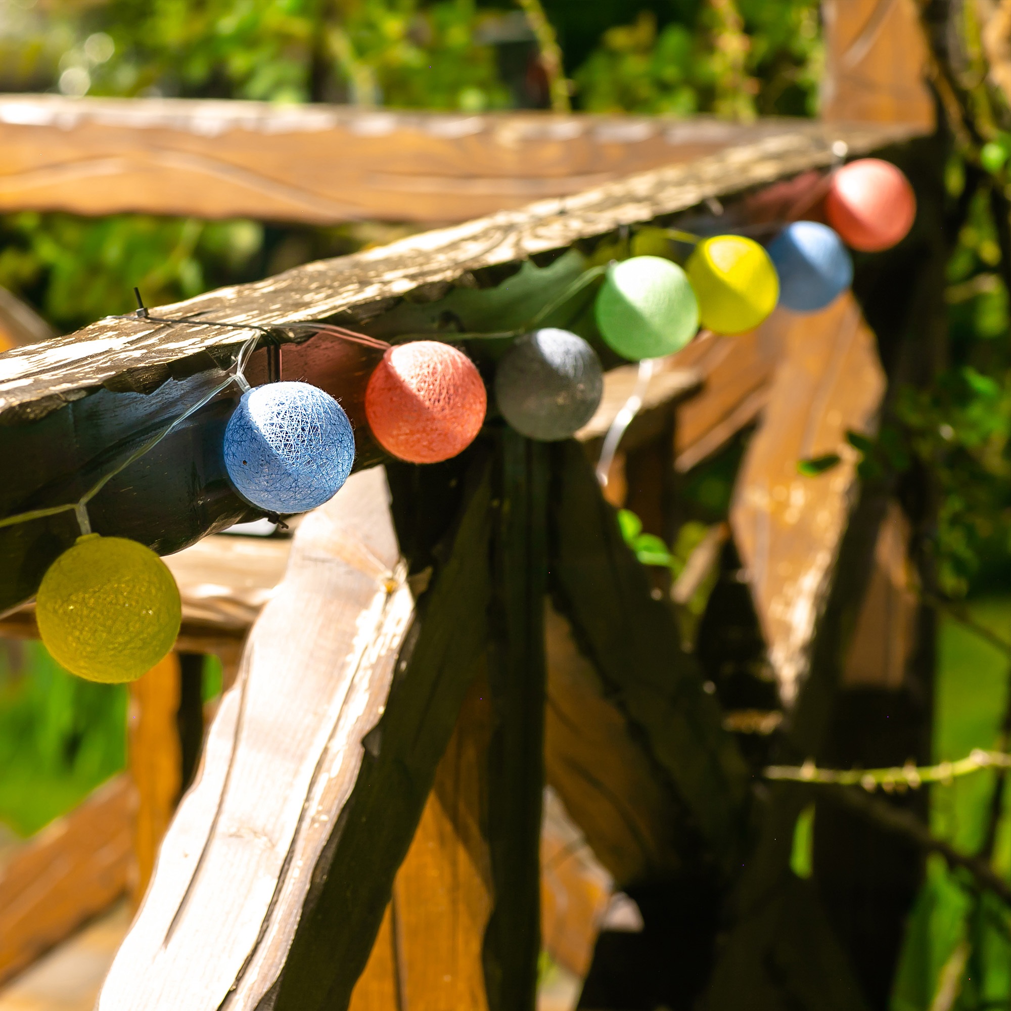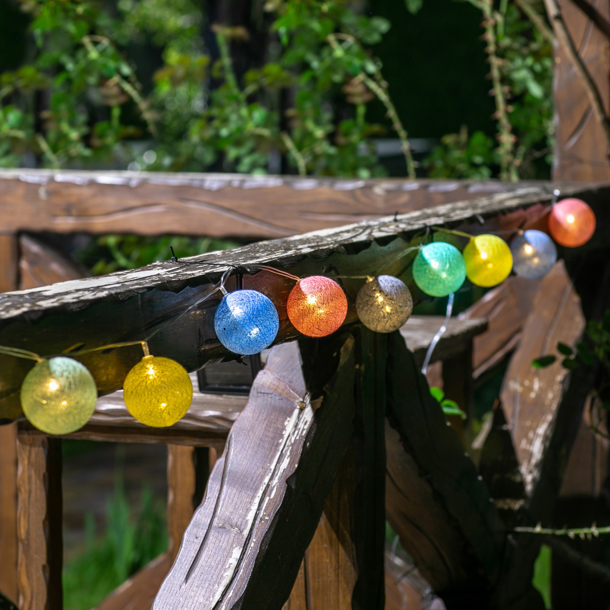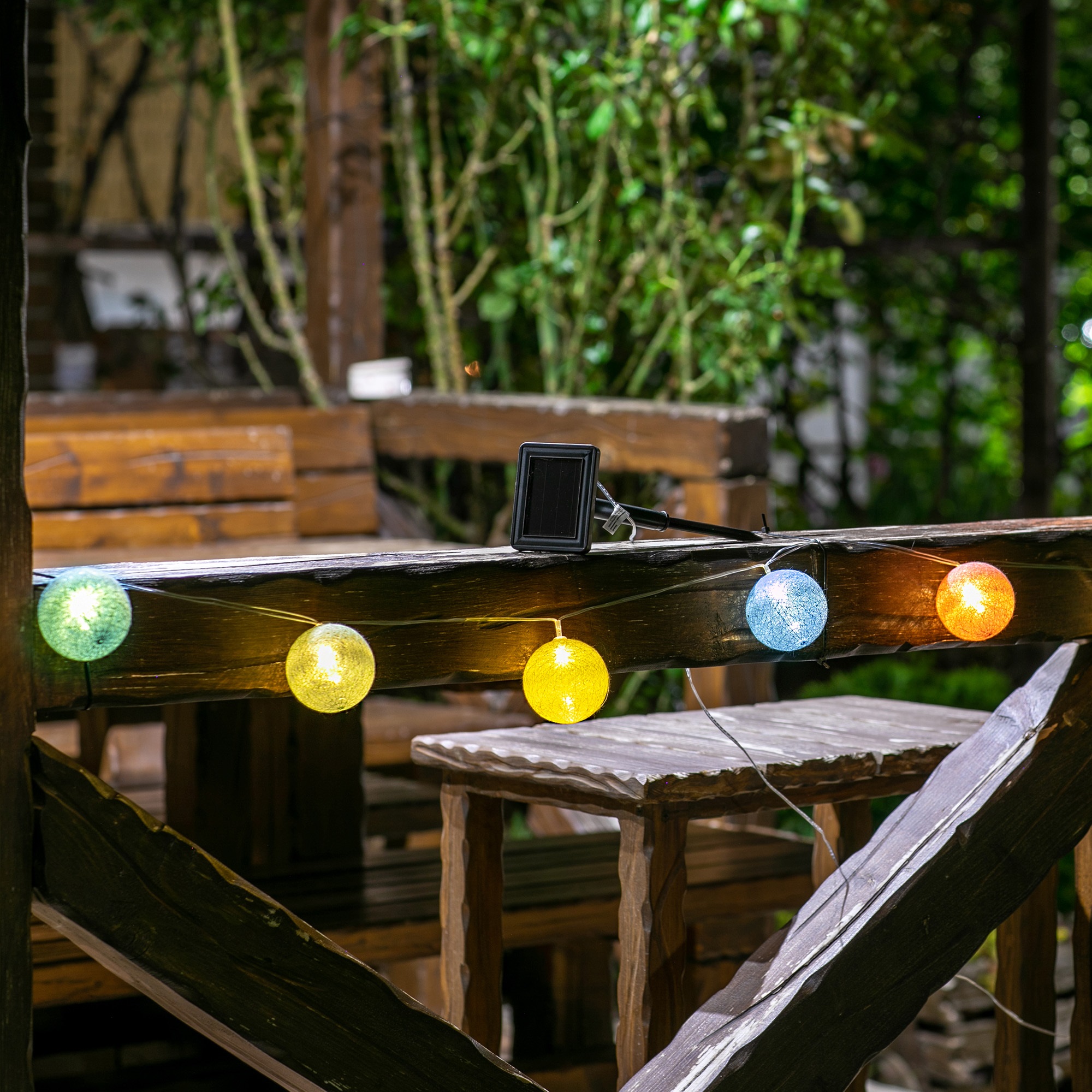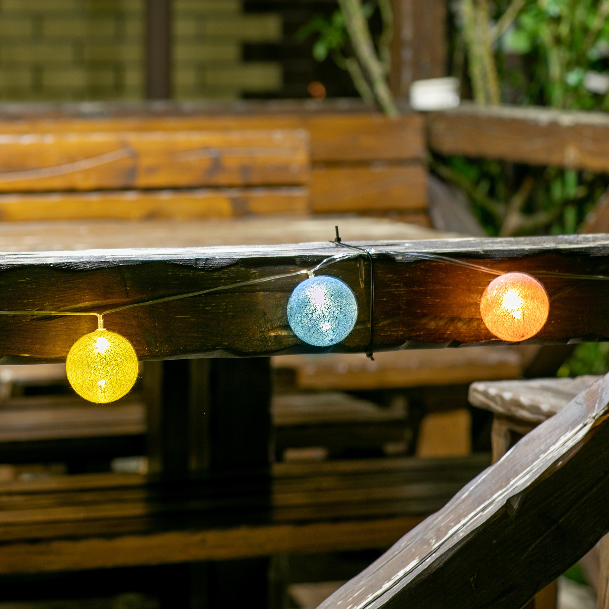 Садовая гирлянда на солнечной батарее Клубки USL-S-139/PM2000 COTTON BALLS предназначена для декоративной подсветки сада — деревьев, беседок и композиций на участке. Комплект представляет собой 10 шаров с встроенным светодиодом, присоединенных к общему направляющему прозрачному проводу. Солнечная панель устанавливается в землю с помощью колышка (в комплекте). Цвет свечения — теплый белый. Цветовая температура - 3000К. Гирлянда предназначена для уличной подсветки, диапазон рабочих температур - от -20 до +40 °С. Гирлянда изготовлена из пластика, степень пылевлагозащиты IP44. Гирлянда дополнит ландшафтный дизайн и станет украшением на праздник. Подключение к электросети не требуется. Встроенный аккумулятор 400 мАч, заряжается в светлое время суток с помощью солнечной панели. Полностью заряженный аккумулятор обеспечивает свечение до 8 часов. Удобный выключатель расположен на батарейном блоке. Длина гирлянды 18,8 м, длина кабеля 2 м, диаметр каждого светильника 60 мм. Габариты изделия - ДхШхВ 1800х60х60 мм. Вес изделия - 162 г. Гарантия - полгода. Срок службы гирлянды - 50 000 часов.
