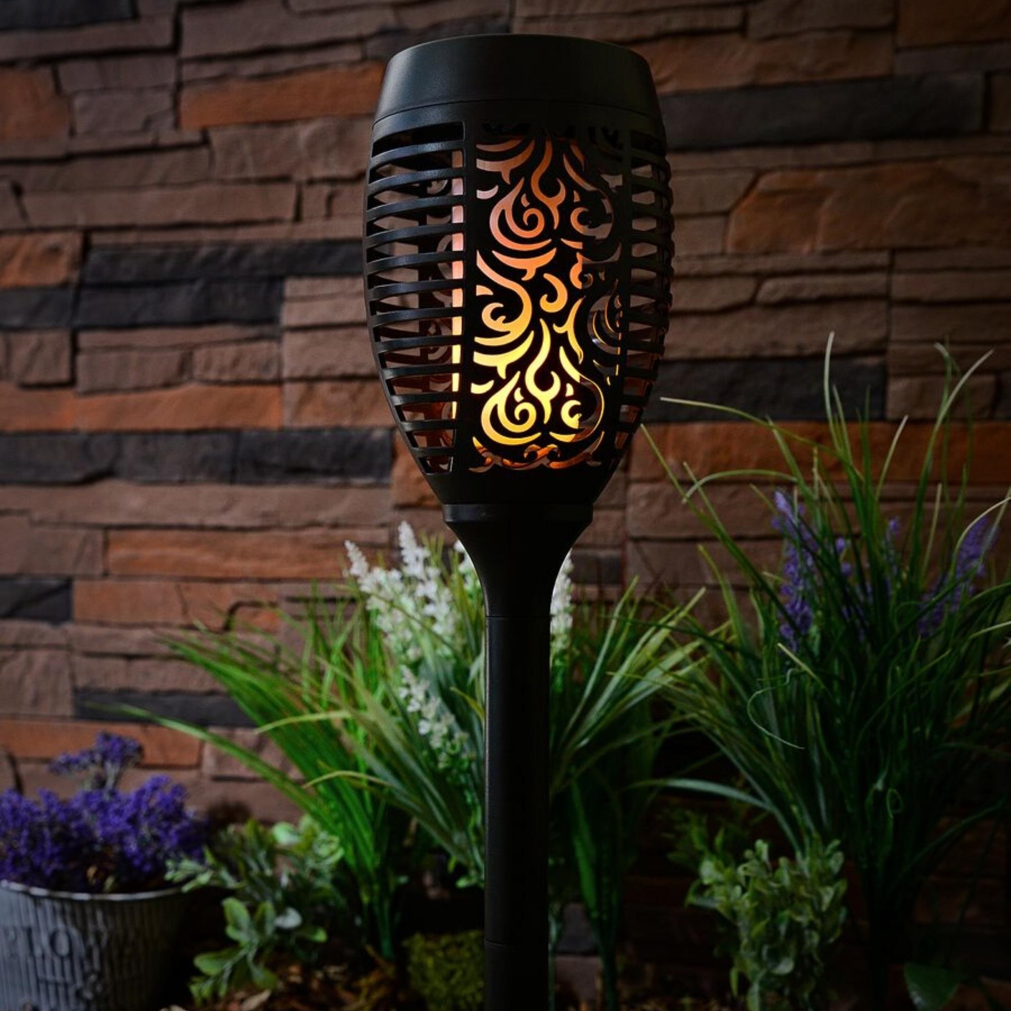 Садовый светильник-факел на солнечной батарее USL-S-183/PM490 SMALL TORCH предназначен для декоративной подсветки сада - для газонов, клумб, альпийских горок. Прибор устанавливается вертикально в землю с помощью пики или на ровную поверхность с помощью плоской подставки (в комплекте). Высота светильника регулируется с помощью 2 сегментов трубки, 3 уровня утановки - высокий (2 сегмента трубки), средний (1 сегмент трубки) и низкий (без трубки). В светильнике используется 51 светодиод, цвет свечения - эффект горящего пламени. Световой поток 3 лм. Светильник-факел - отличное решение для декора и подсветки загородной территории. Светильник предназначен для уличной подсветки, диапазон рабочих температур от -20 до +35 °С. Корпус светильника изготовлен из пластика черного цвета, степень пылевлагозащиты IP44. Подключение к электросети не требуется. Встроенный аккумулятор 400 мАч, заряжается в светлое время суток с помощью солнечной панели. Полностью заряженный аккумулятор обеспечивает свечение до 8 часов. Удобный выключатель расположен под крышкой плафона на батарейном блоке.Габариты изделия - ДхШхВ 120х120х490 мм. Общий вес комплекта 517 г. Гарантия - полгода. Срок службы светильника - 30 000 часов.