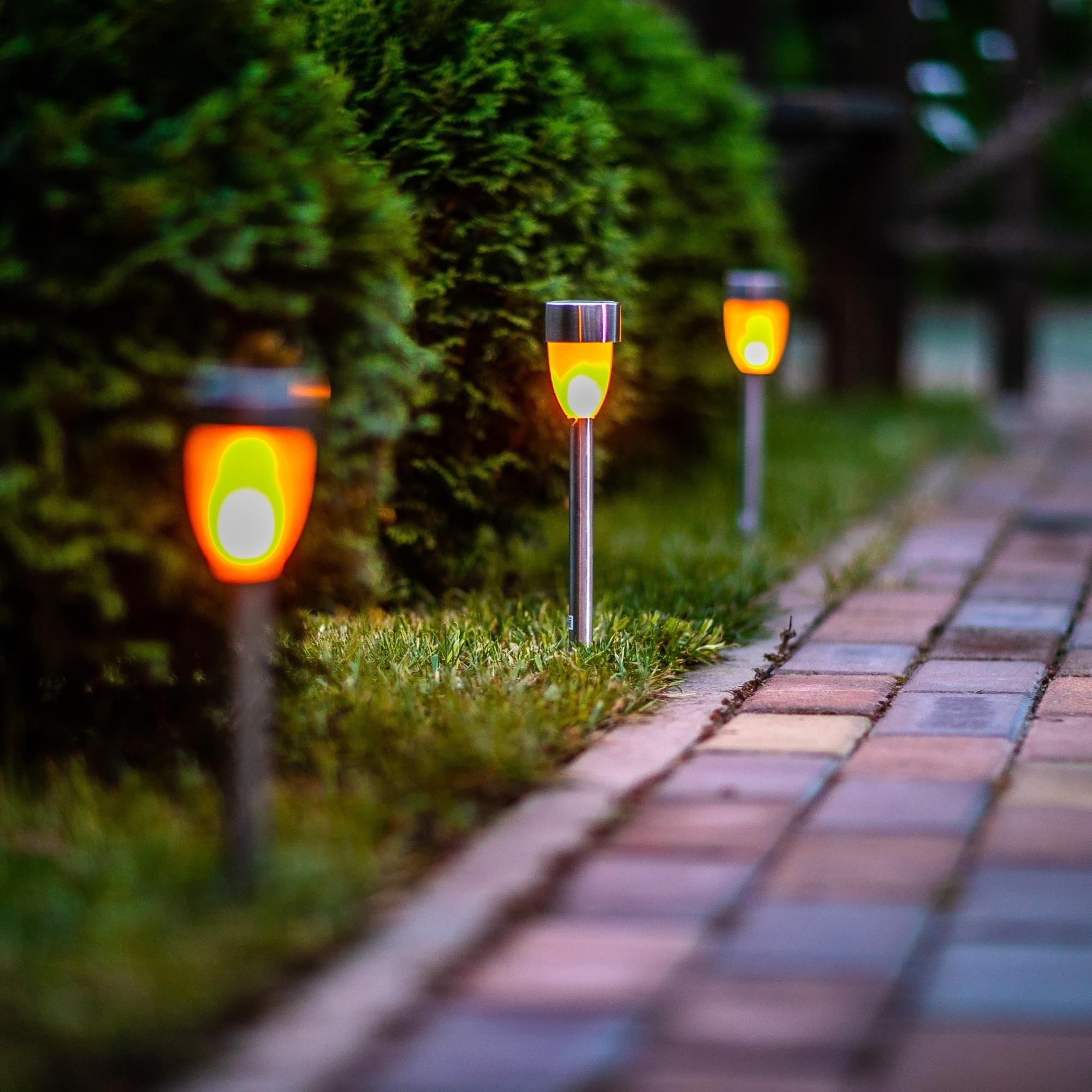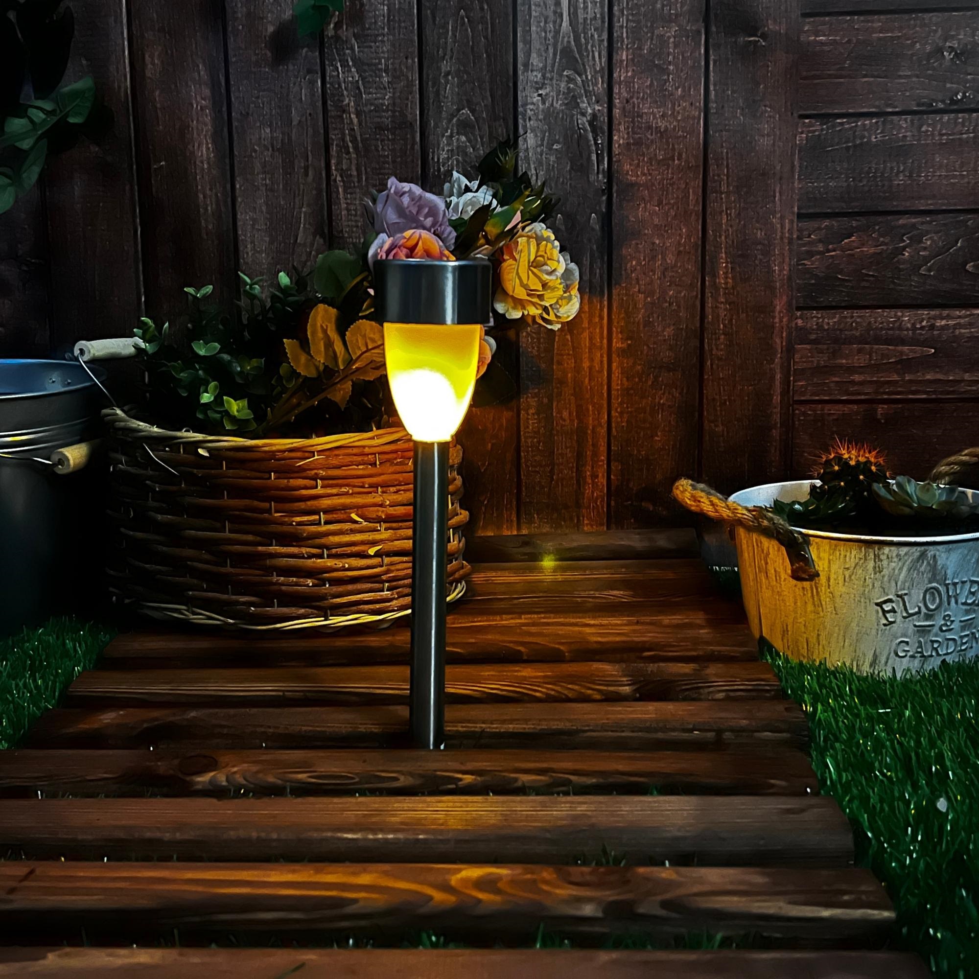 Садовый светильник-факел на солнечной батарее USL-S-187/MM360 METAL TORCH предназначен для декоративной подсветки сада - для газонов, клумб, альпийских горок. Устанавливается вертикально в землю с помощью пики. В светильнике используются светодиоды (10 шт), цвет свечения - эффект горящего пламени. Светильник-факел - отличное решение для декора и подсветки загородной территории. Световой поток 3 лм. Светильник предназначен для уличной подсветки, диапазон рабочих температур от -20 до +35 °С. Корпус светильника изготовлен из металла, цвет - металлик, степень пылевлагозащиты IP44. Удобный выключатель расположен под крышкой на плафоне светильника. Подключение к электросети не требуется. Встроенный аккумулятор 150 мАч, заряжается в светлое время суток с помощью солнечной панели. Полностью заряженный аккумулятор обеспечивает до 8 часов. Габариты изделия - ДхШхВ 75х60х185 мм. Общий вес комплекта 120 г. Гарантия - полгода. Срок службы светильника - 30 000 часов.