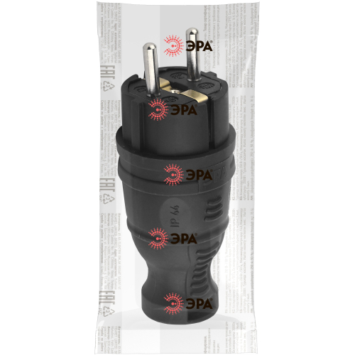 Вилка прямая, каучуковая, с заземлением. Пыле- и влаго-защита IP44. Максимальная мощность - 16 A/3500 Вт