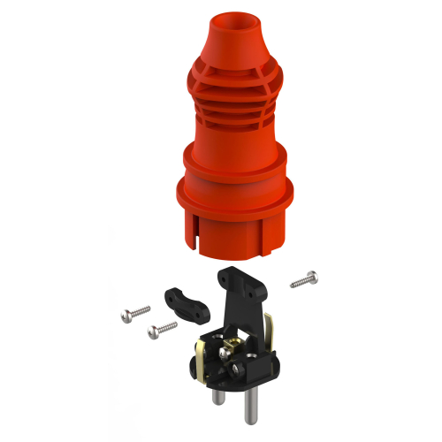 Прямая красная каучуковая вилка с заземлением из серии каучуковых разъёмов ЭРА российского производства. Имеется аналог в чёрном цвете. Рассчитана на нагрузку до 16 А и позволяет подключать кабель КГ сечением до 3x2.5 мм².