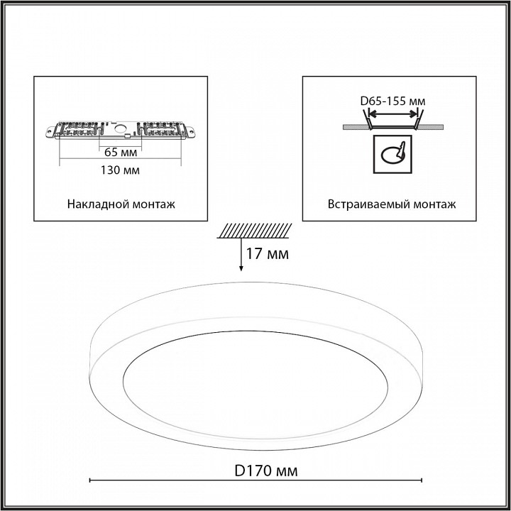 Крепление 2 в 1 — накладное и встроенное. Встроенный регулируемый датчик движения с возможностью выбрать расстояние действия датчика и время отключения светильника после покидания зоны его действия. Возможность выбора цветовой температуры при помощи переключателя на задней панели светильника.