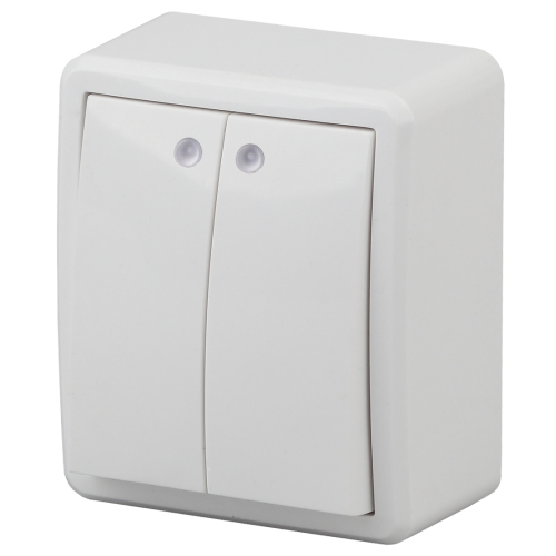 Выключатель 2-клавишный с подсветкой серии Эра Эксперт открытой установки цвет белый 11-1205-01. Номинальные характеристики 10А 250В. Выключатель выполнен из качественного поликарбоната, оснащён уникальными винтовыми клеммами ЭКСПЕРТ для максимально качественного зажима кабеля в механизме.