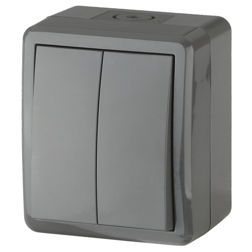Выключатель влагозащищённый IP54 2-клавишный серии Эра Эксперт открытой уст. цвет серый 11-1404-03. Номинальные характеристики. Выключатель выполнен из качественного поликарбоната, оснащён уникальными винтовыми клеммами ЭКСПЕРТ для максимально качественного зажима кабеля в механизме.