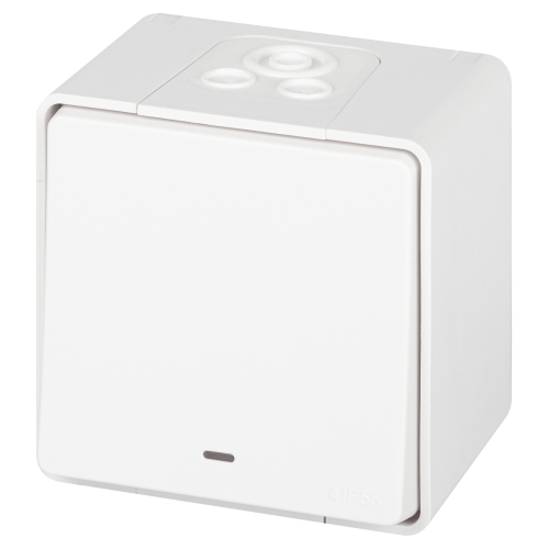 Выключатель влагозащищённый 1-клавишный с подсветкой серии Эра Эксперт накладн IP55 цвет белый 11-1502-01 открытой установки. Номинальные характеристики 10А 250В. Выполнен из качественного поликарбоната, оснащён уникальными винтовыми клеммами ЭКСПЕРТ для максимально качественного зажима кабеля в механизме.