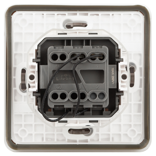 Выключатель влагозащищённый 1-клавишный с подсветкой серии Эра Эксперт накладн IP55 цвет белый 11-1522-01 скрытой установки. Номинальные характеристики 10А 250В . Выполнен из качественного поликарбоната, оснащён уникальными винтовыми клеммами ЭКСПЕРТ для максимально качественного зажима кабеля в механизме.