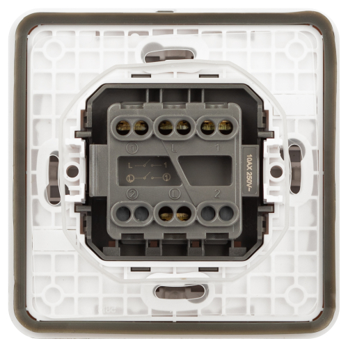 Выключатель влагозащищённый 2-клавишный серии Эра Эксперт накладной IP55 цвет белый 11-1524-01 скрытой установки. Номинальные характеристики 10А 250В. Выполнен из качественного поликарбоната, оснащён уникальными винтовыми клеммами ЭКСПЕРТ для максимально качественного зажима кабеля в механизме.
